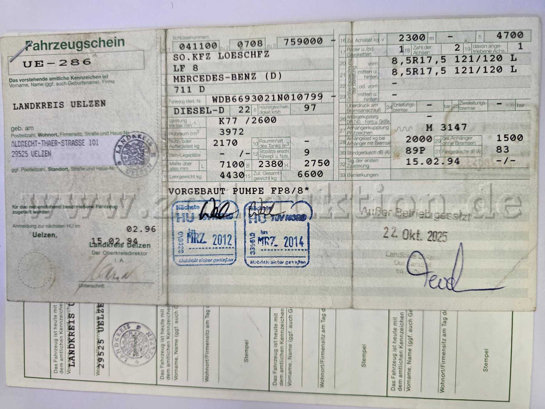 Die Fahrzeugübergabe erfolgt erst nach Eingang der Endsumme auf ein Konto der Kreiskasse Uelzen.
