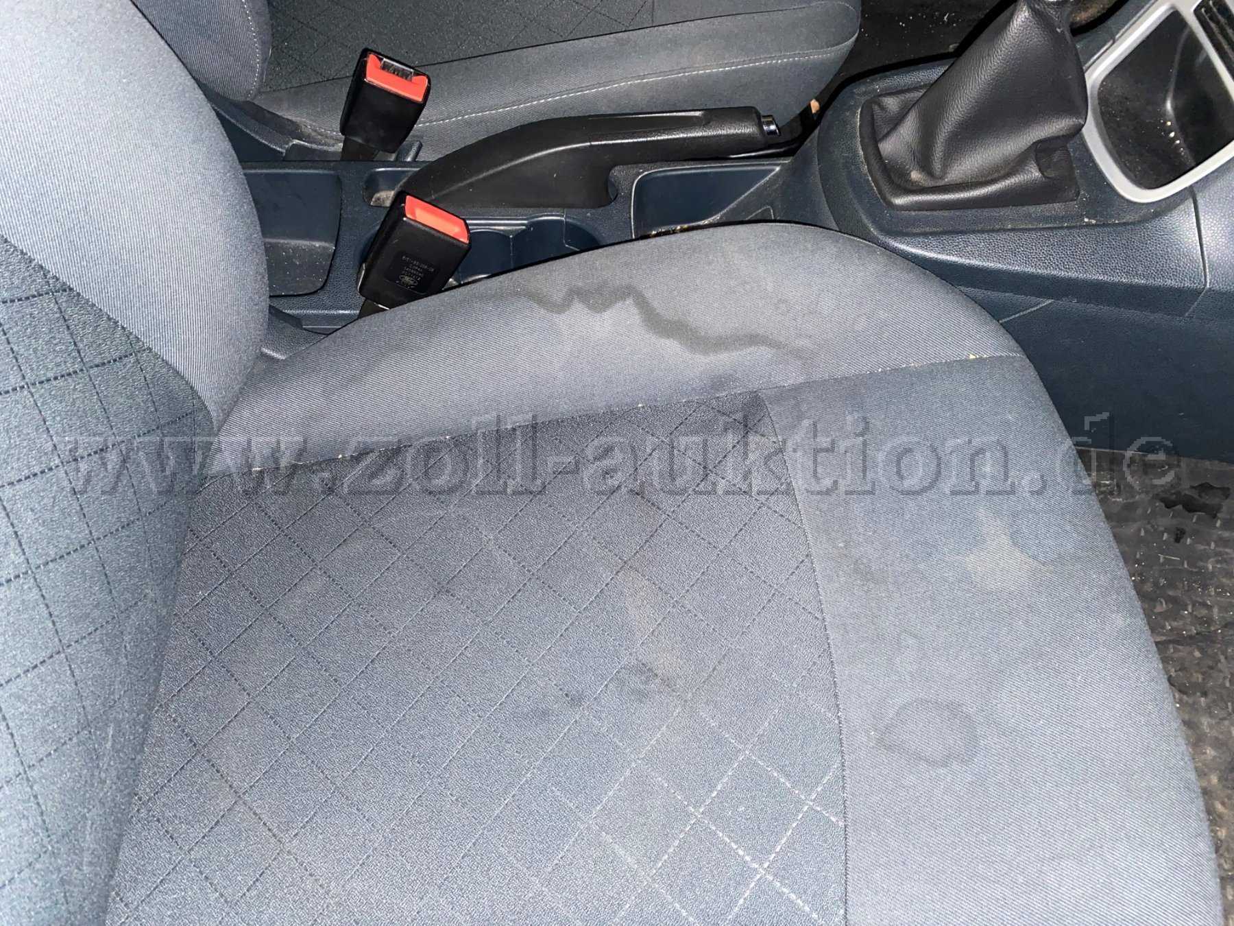 Aufgrund eines Auffahr-Unfalls ist die Frontpartie beschädigt (eingedrückte Motorhaube, Kratzer auf Scheinwerfer). Der Wagen ist jedoch fahrbereit und kann ohne Probleme bewegt werden. Äußerlich zeigt sich der Wagen - abgesehen von der Motorhaube - in einen sehr guten Zustand. Lediglich minimale kleine Kratzer im Lack finden sich unterhalb des Kofferraumes. Auf dem Beifahrersitz ist ein Fleck erkennbar, der durch eine auslaufende Wasserflasche verursacht wurde.
