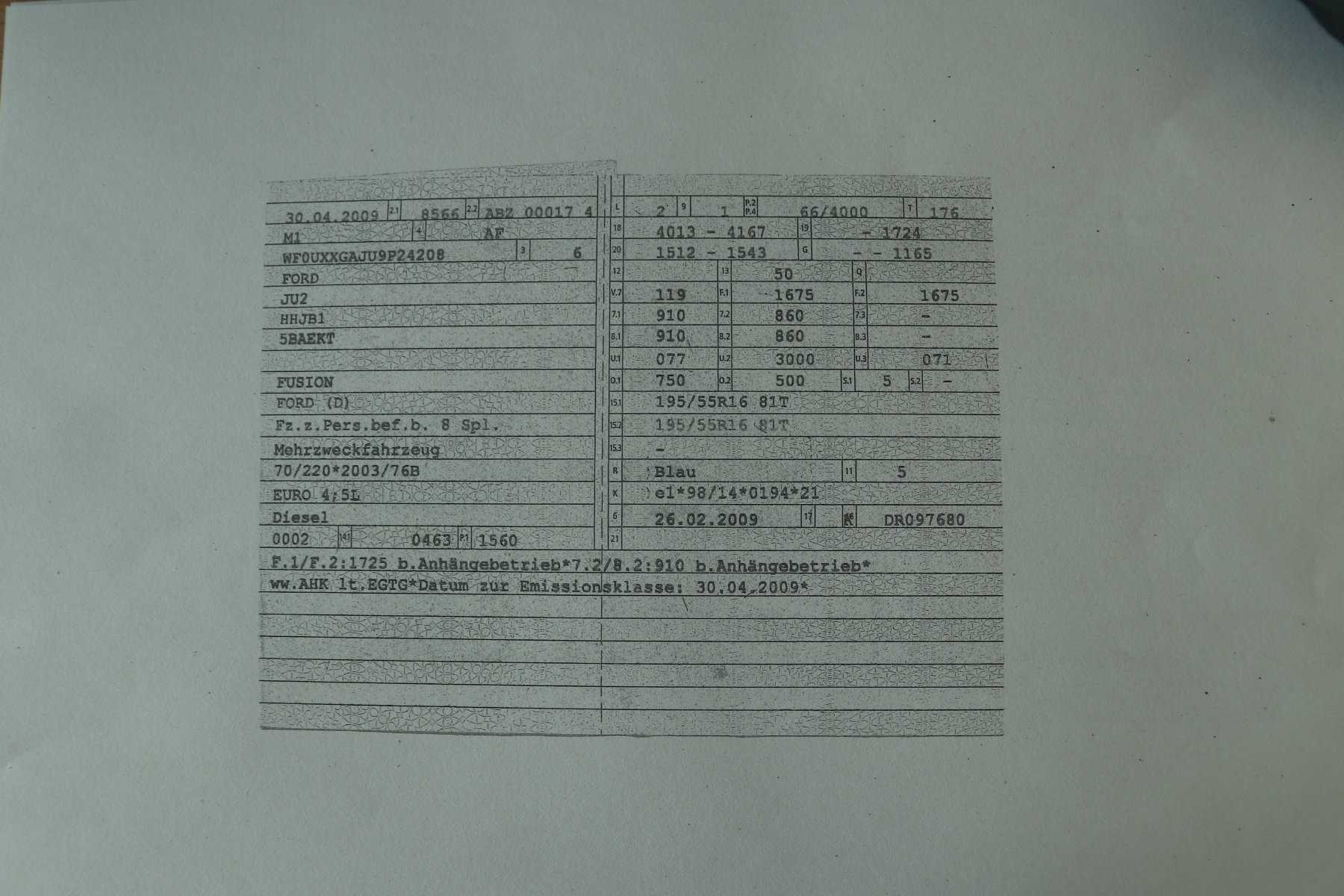 Zulassungsbescheinigung Teil I vorhanden.