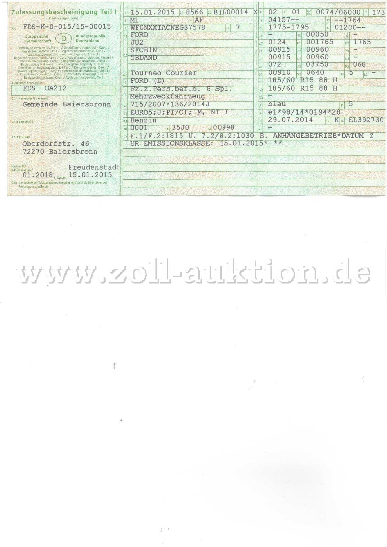 Aus unserem Fuhrpark der Gemeinde Baiersbronn versteigern wir einen Ford Tourneo Courier.