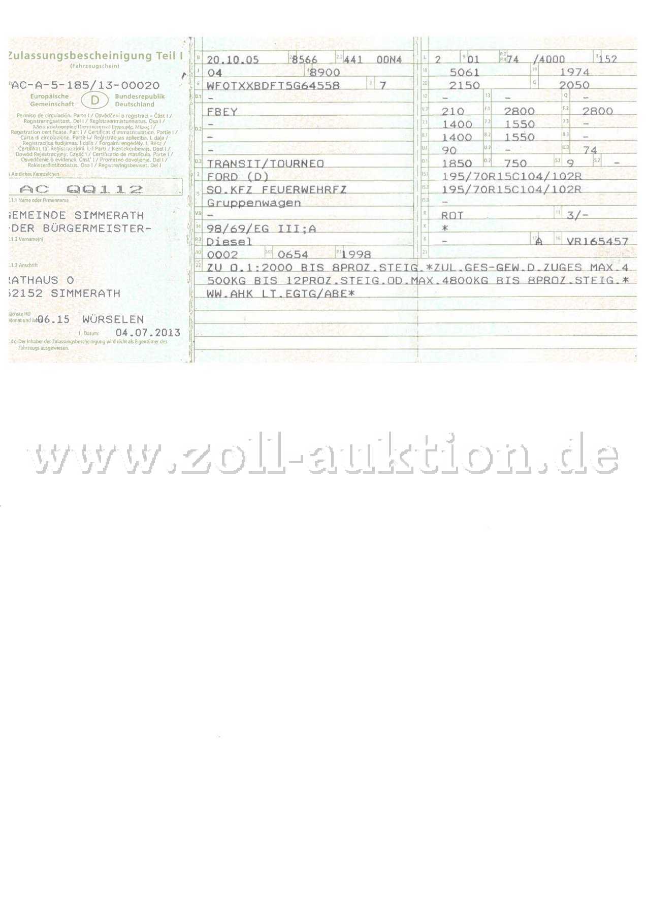 - Das Fahrzeug wird als Einsatzfahrzeug versteigert und ist in diesem Zustand nur durch Aufgabenträger im Brand- oder Katastrophenschutz/Rettungsdienst zulassungsfähig.