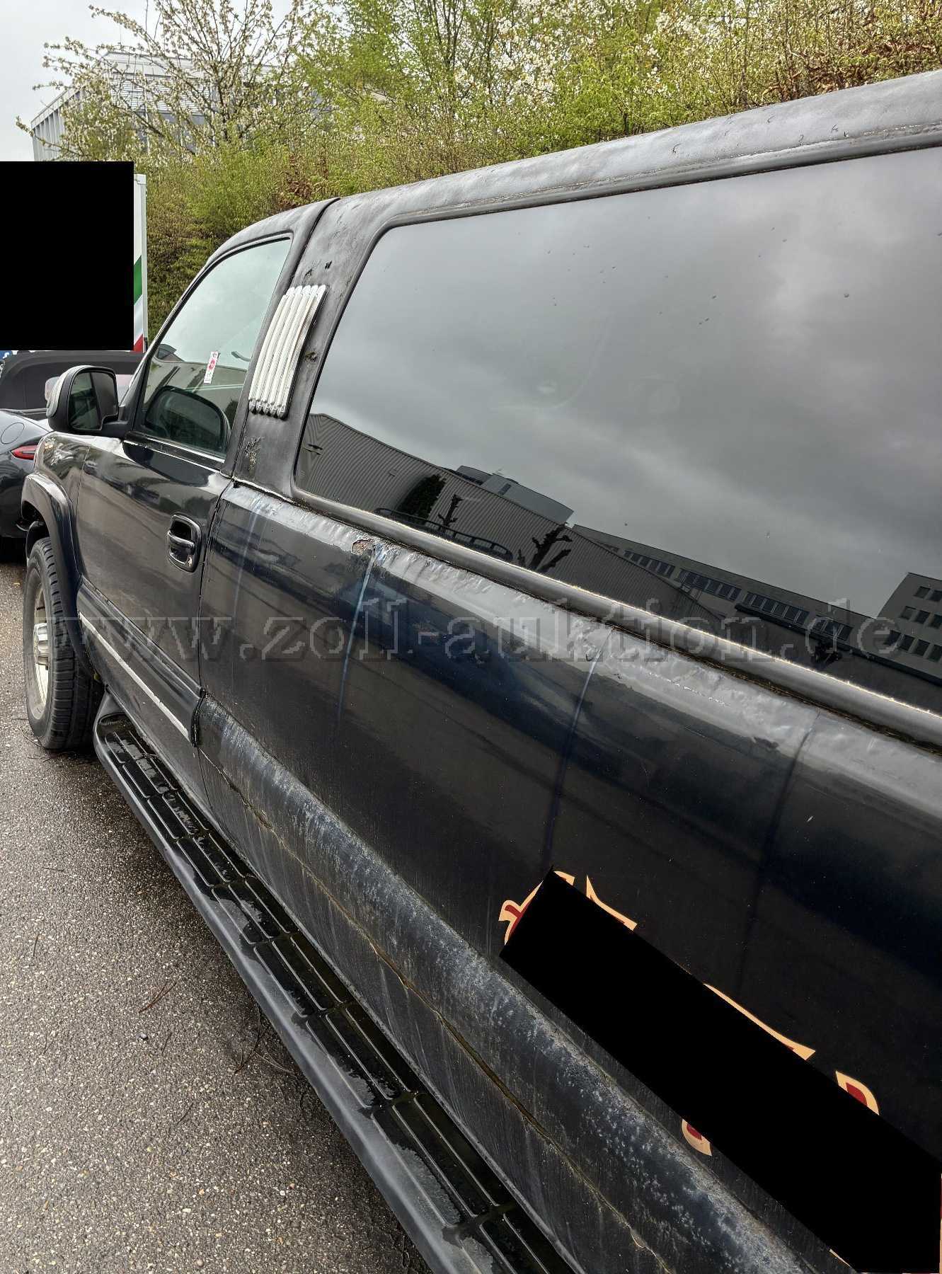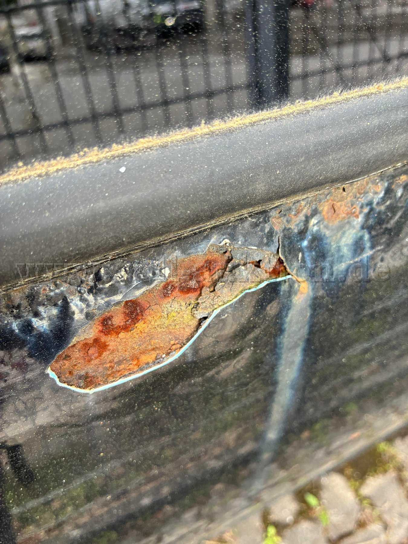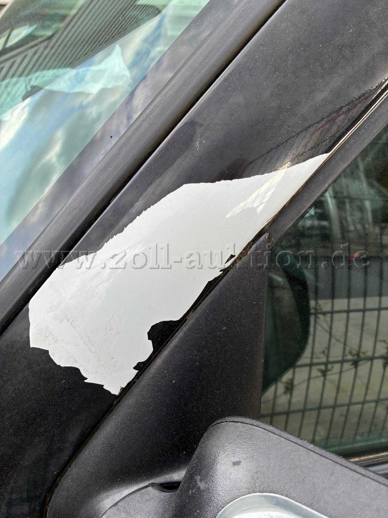 - das Fahrzeug wurde umlackiert (weiße Farbe an manchen Stellen sichtbar).