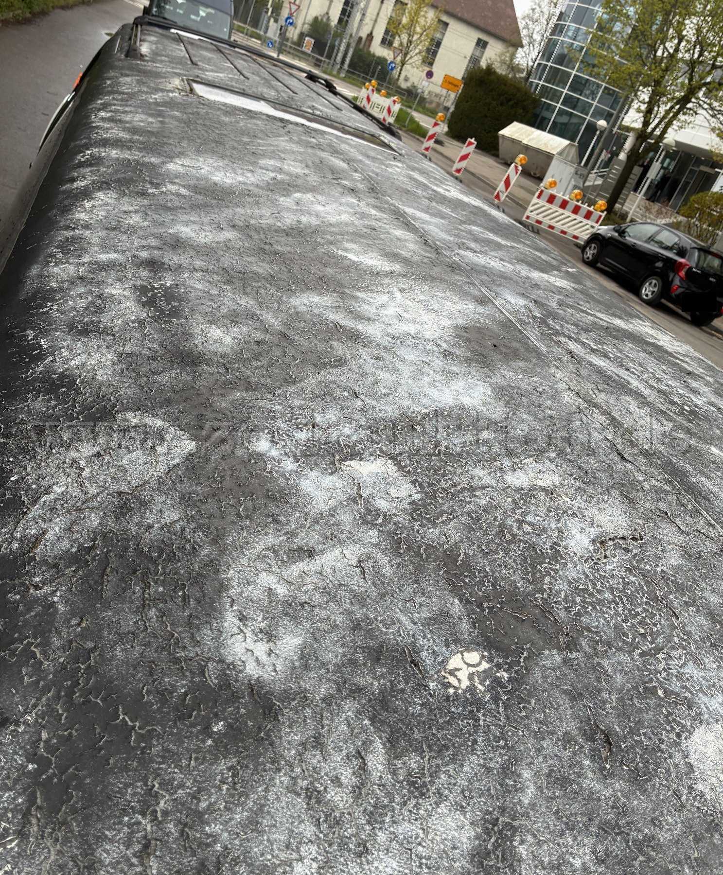 - Dach Verbundstoff/Spachtelmasse (?) teilweise aufgequollen (?).
