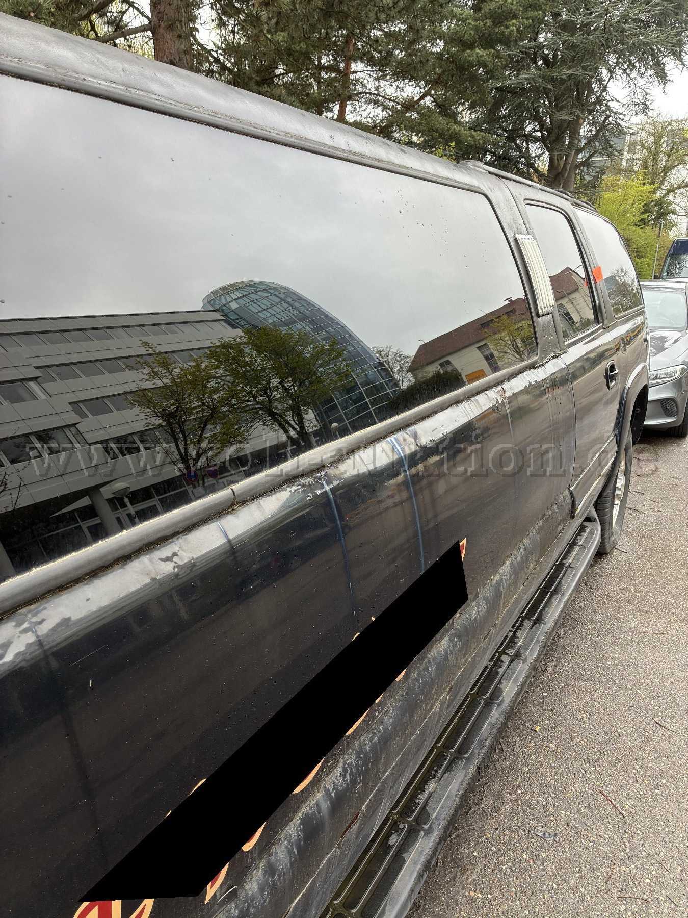 - Aufkleber auf Motorhaube, beiden Seiten und Heckklappe (auf den Fotos unkenntlich gemacht).