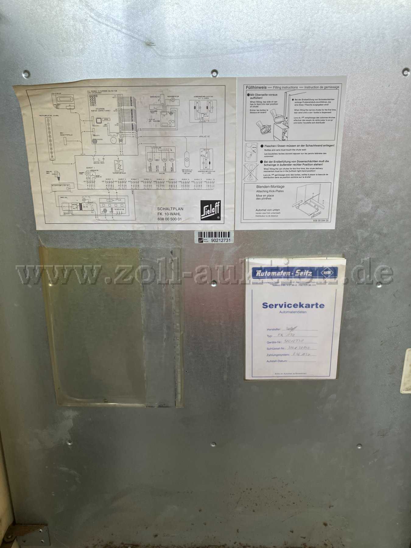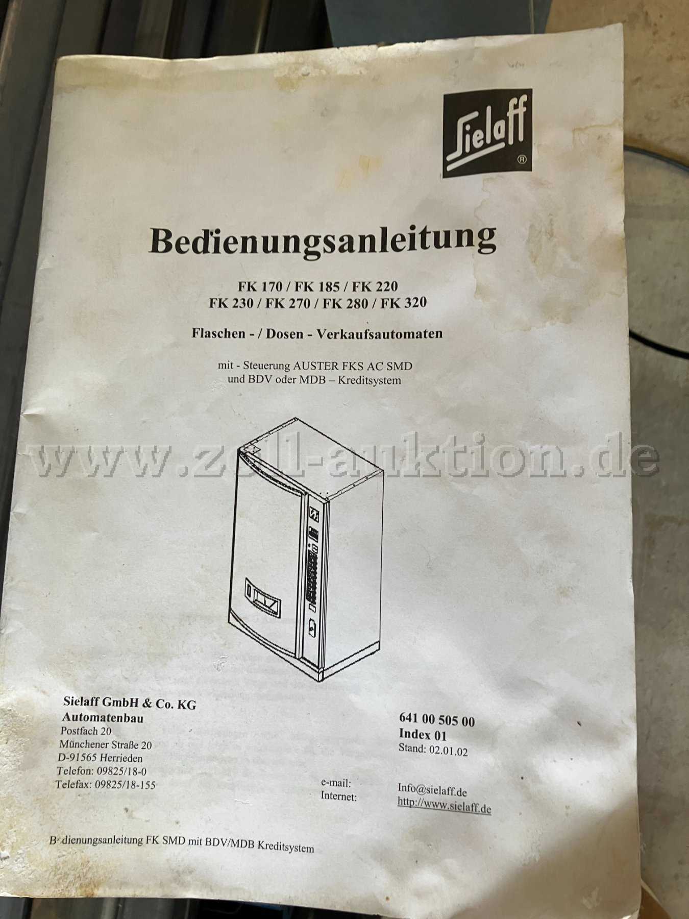 Versteigert wird ein Getränkeautomat Sielaff FK170 der Firma Sielaff GmbH & Co. KG Automatenbau mit folgenden technischen Daten: