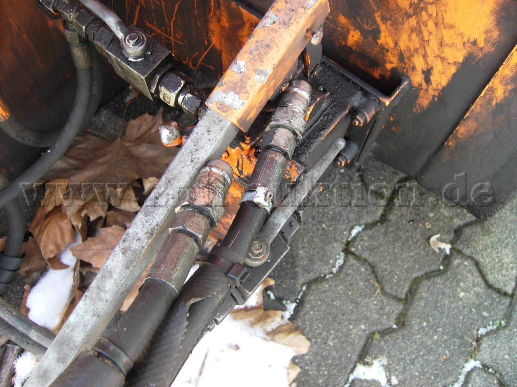 - Die Hydraulikschläuche sind teilweise beschädigt.