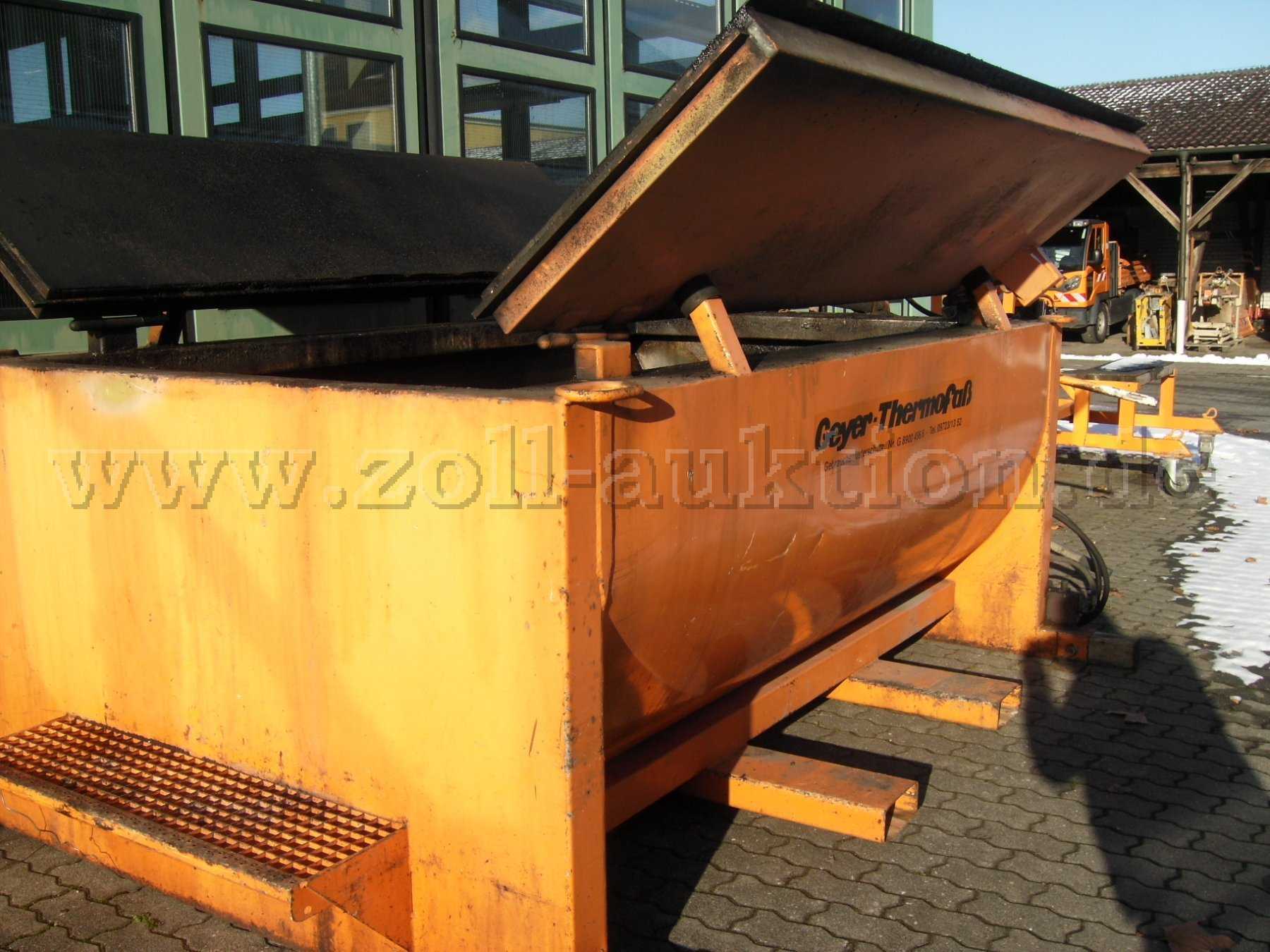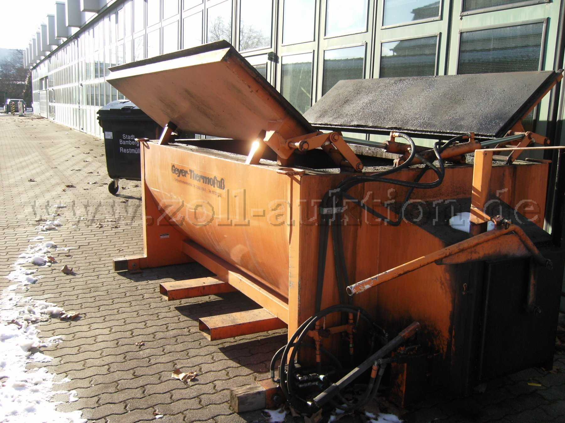 Zur Versteigerung steht ein Geyer Thermofaß des Bamberg Service - Eigenbetrieb der Stadt Bamberg an. Mängel und Beschreibung entnehmen Sie bitte der unten aufgeführten Beschreibung. Bei den eingestellten Fotos können beleuchtungstechnisch bedingte Farbabweichungen zum Original bestehen. Es ist nur das auf denn Bildern zusehende Thermofaß teil der Auktion.