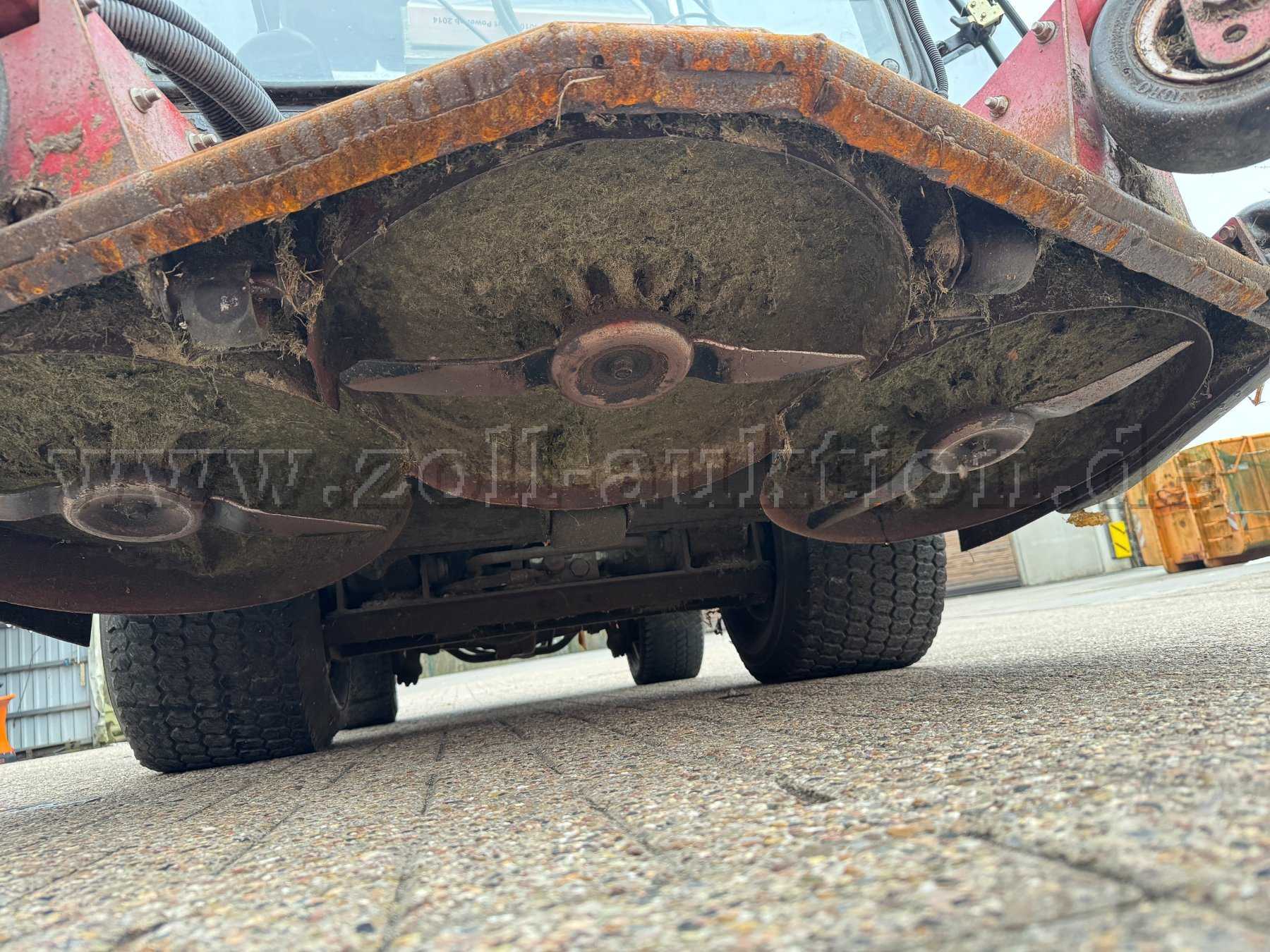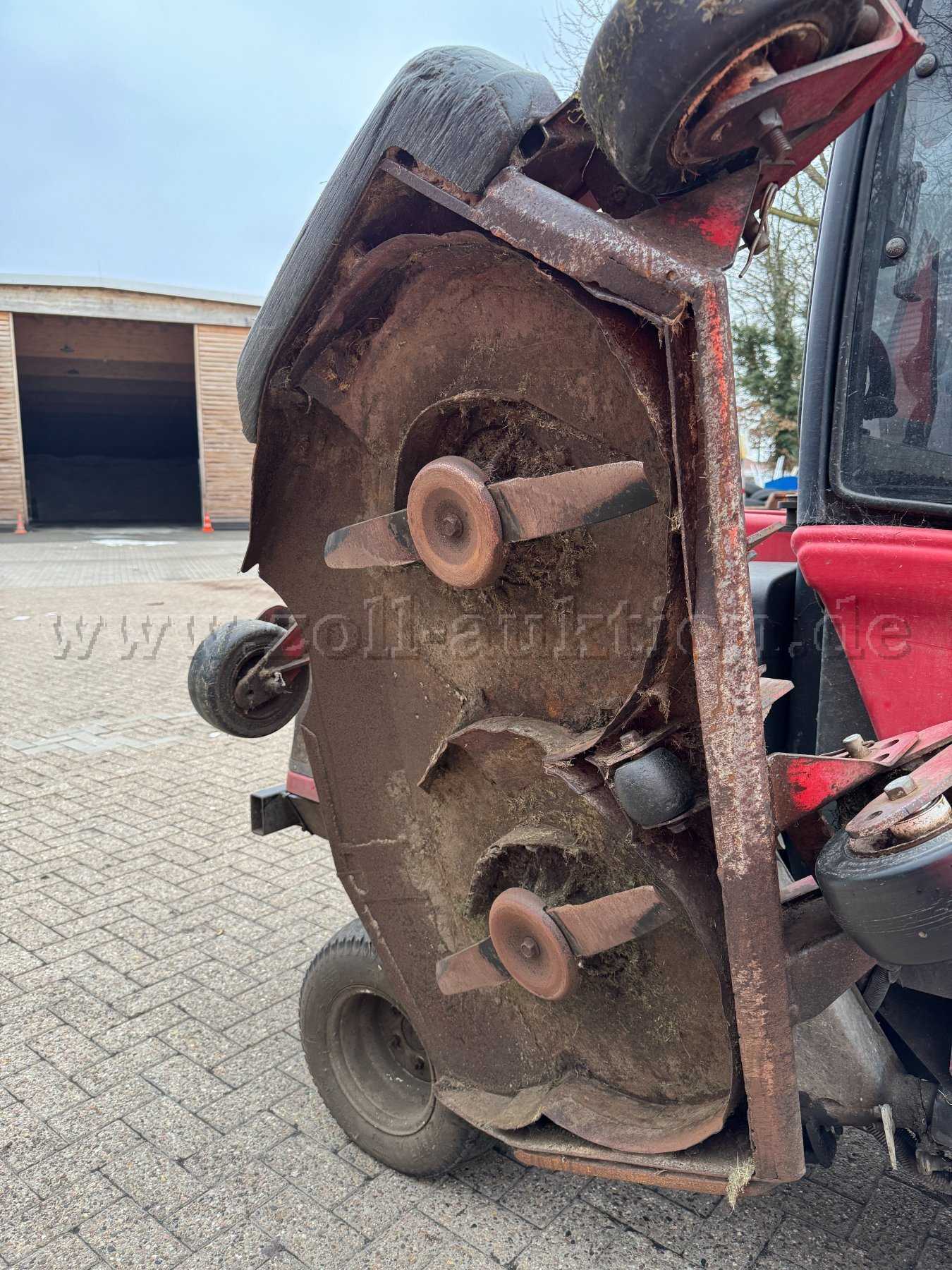 - Allgemeine Gebrauchs- und Alterungsspuren (Kratzer, Dellen, Lackschäden, Korrosion an allen Teilen, Verschleiß an Mähwerken und Fahrwerksteilen) vorhanden.