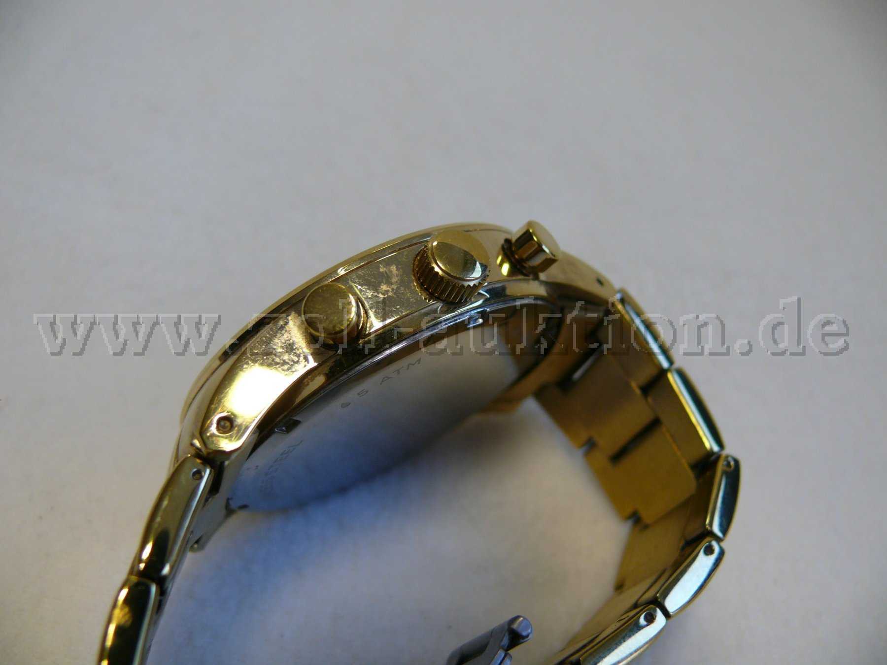 Das Gehäuse, das Glas und das Armband weisen Kratzer und Schmutzanhaftungen auf.