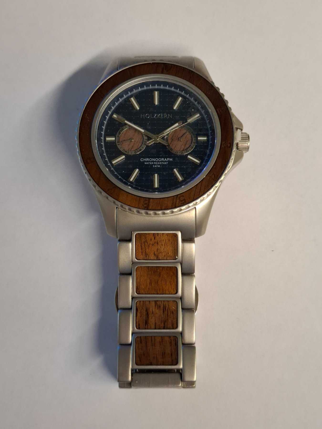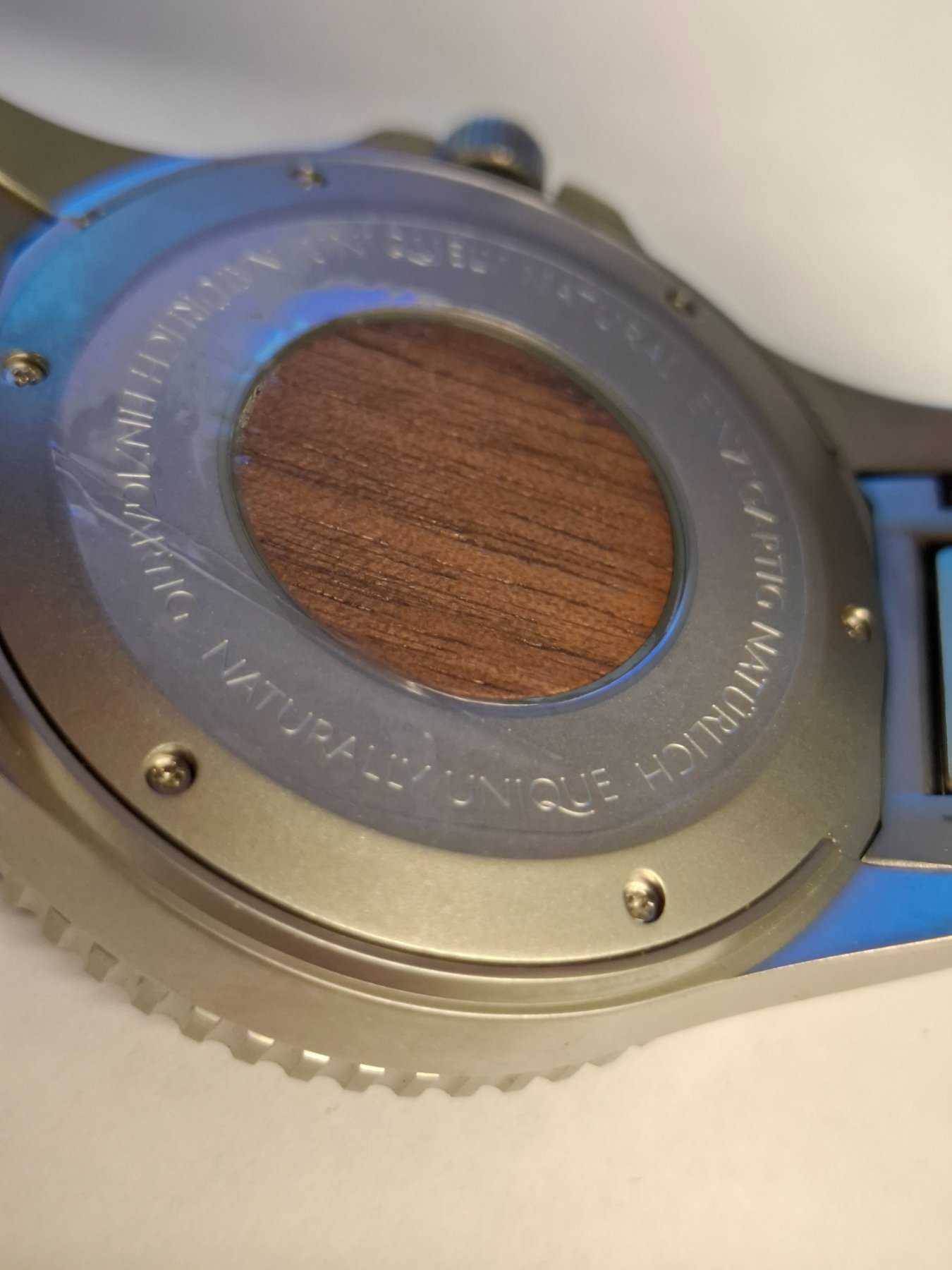 - Holzart unbekannt (Nach Aussage des Herstellers besteht die Uhr aus nachhaltiger Holzherstellung)
