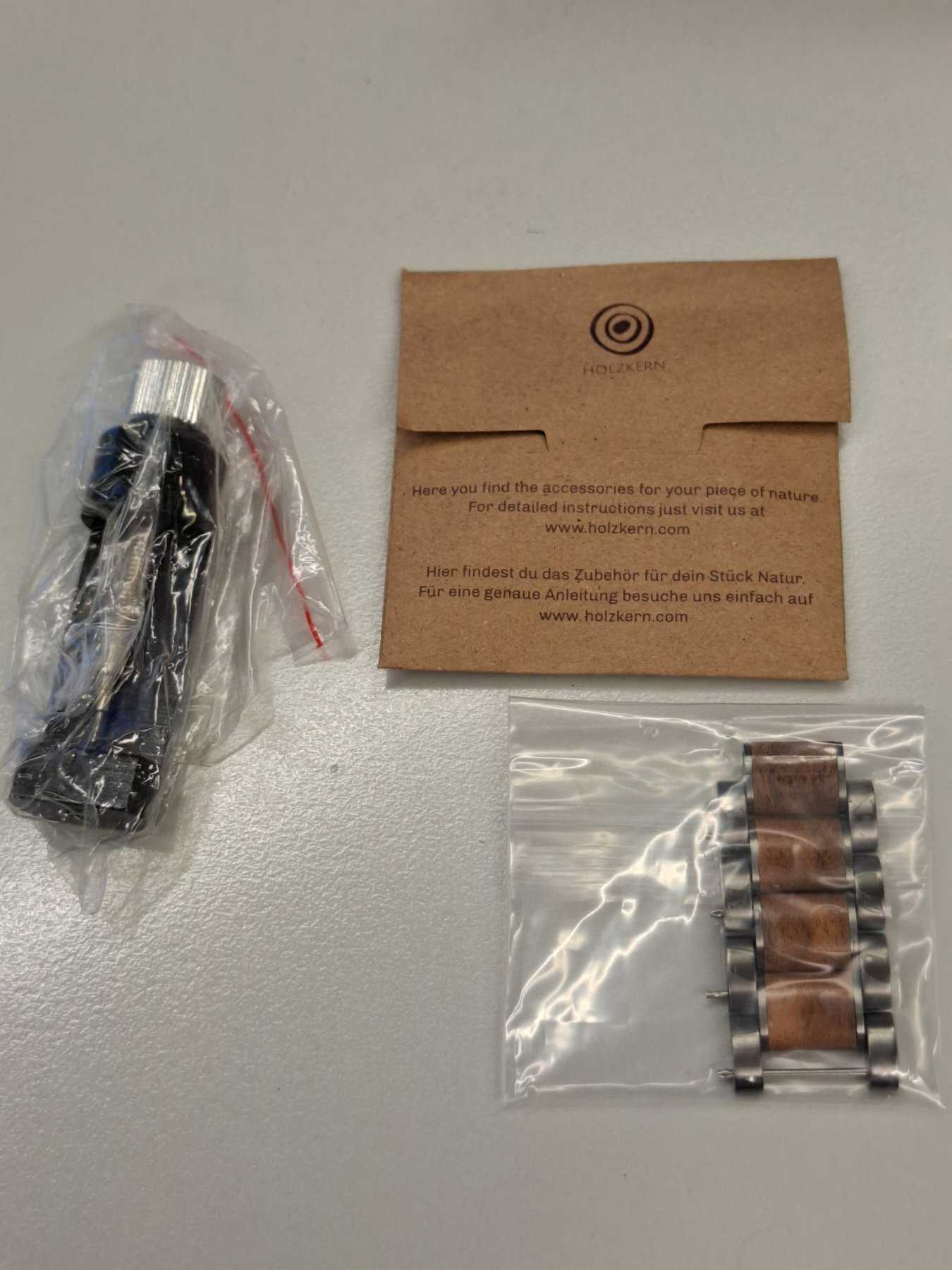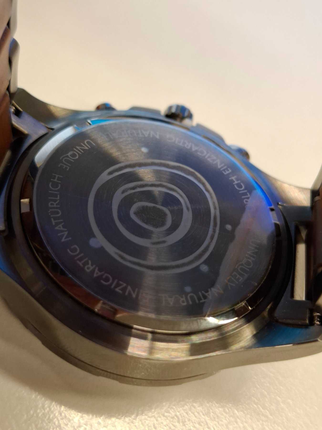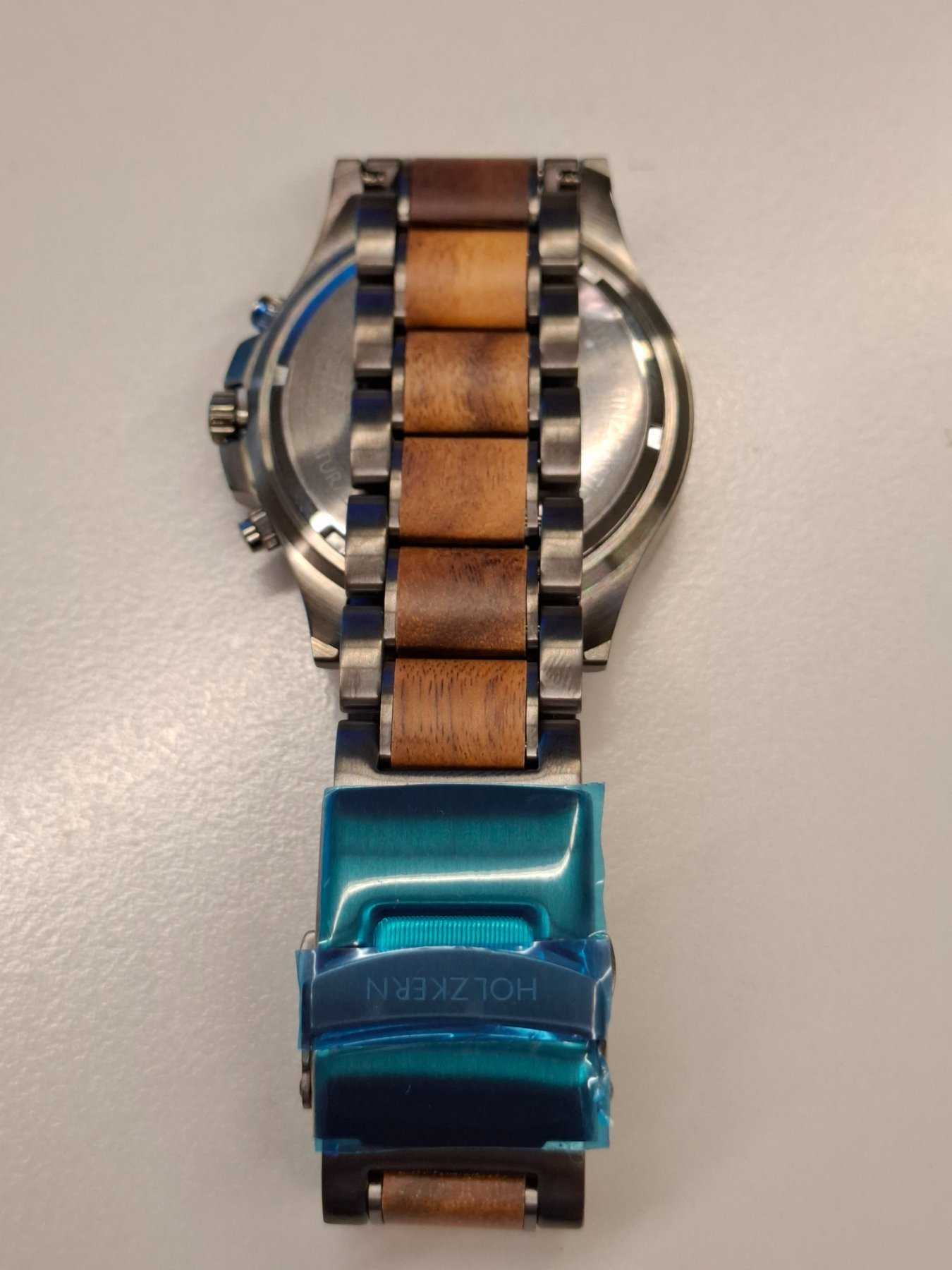 - Holzart unbekannt (Nach Aussage des Herstellers besteht die Uhr aus nachhaltiger Holzherstellung)