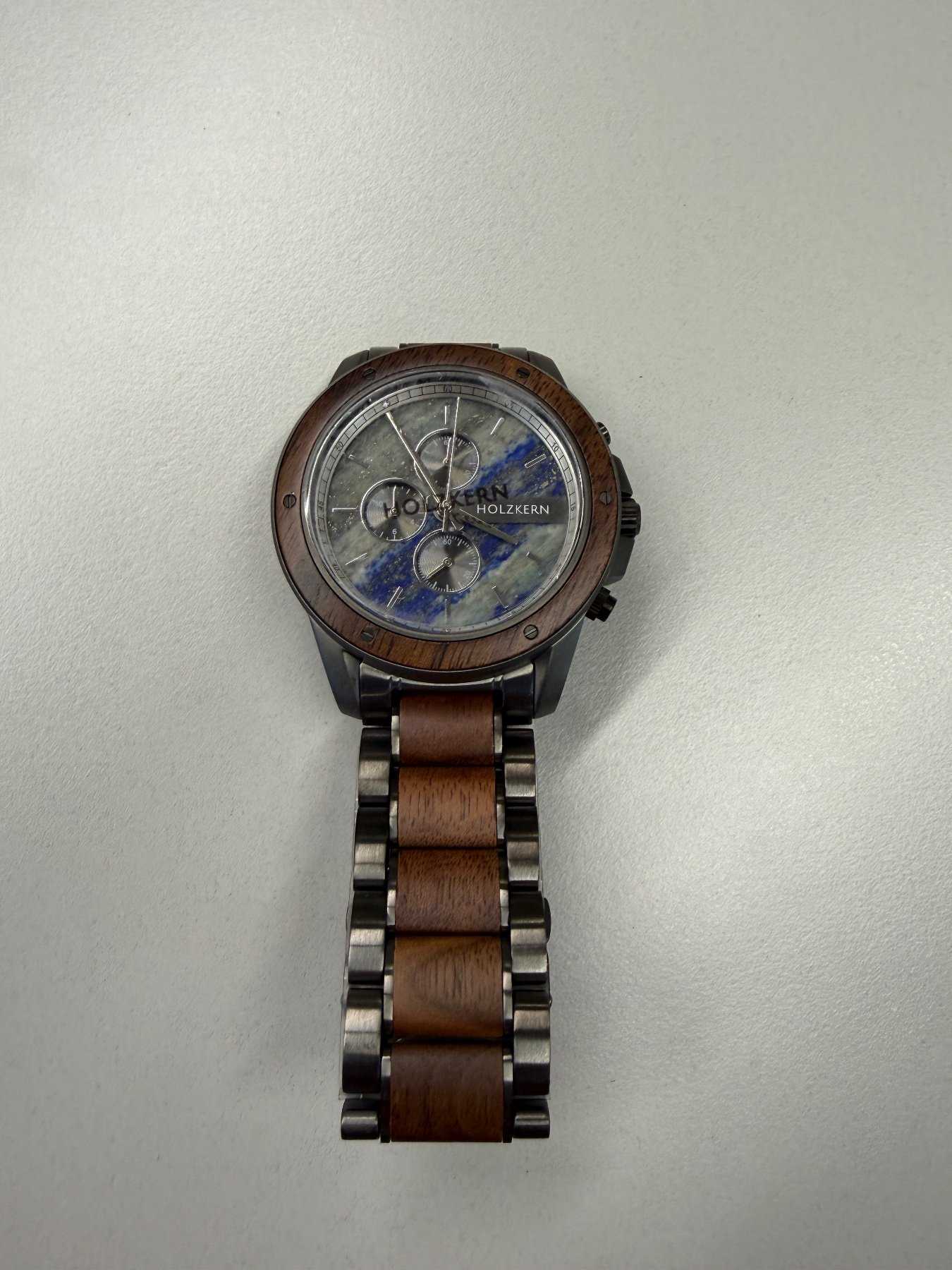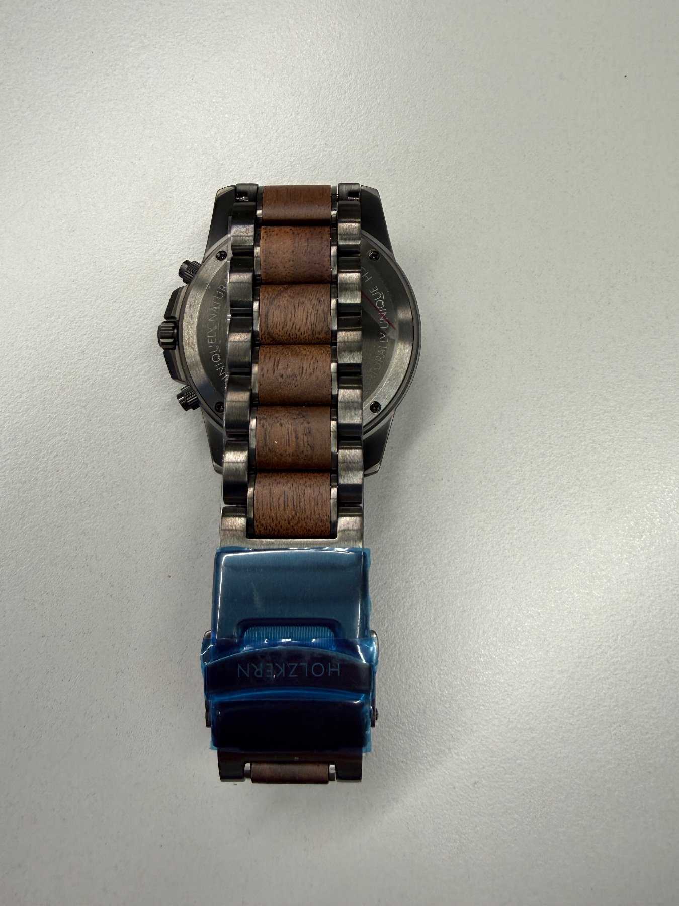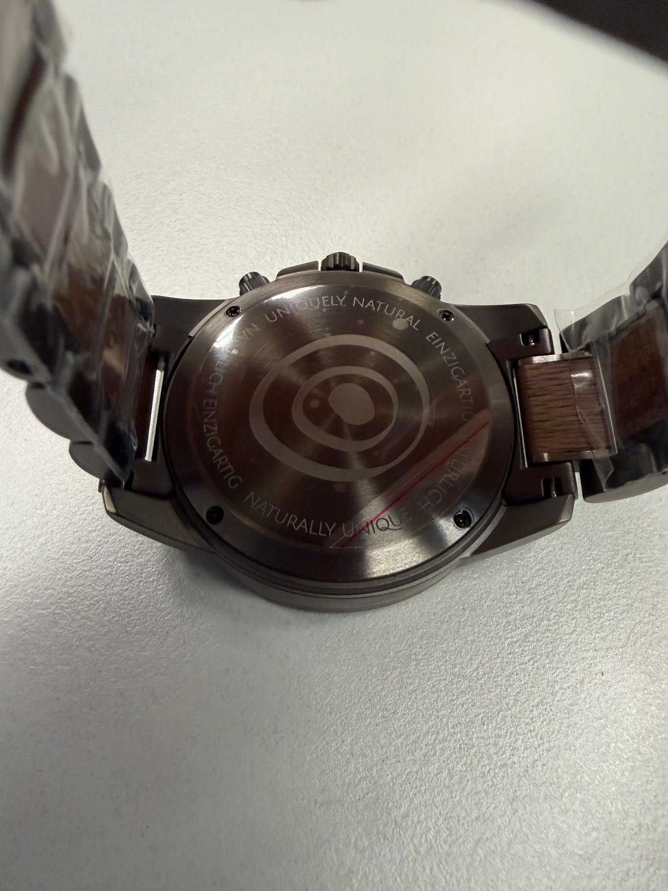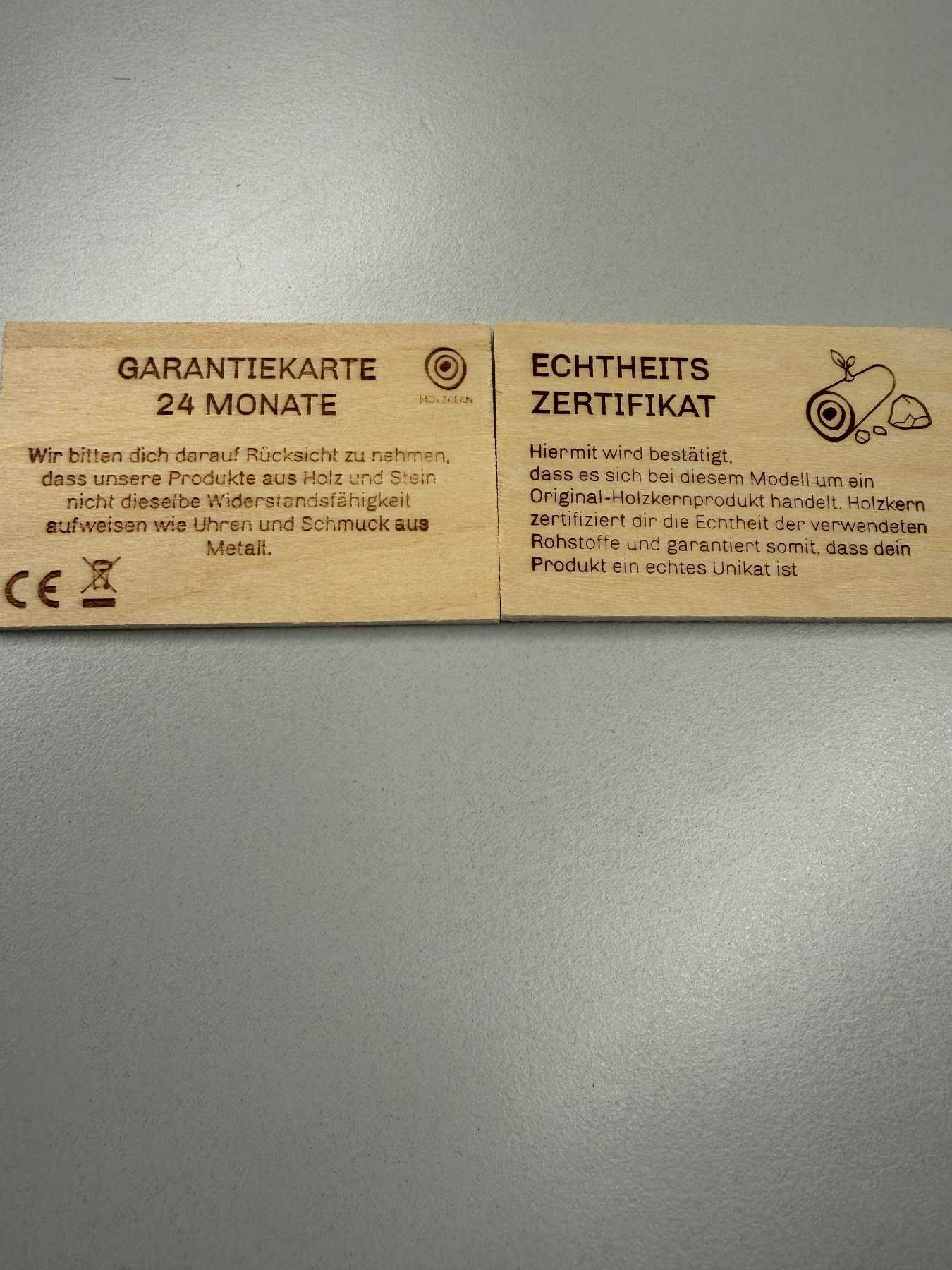 - Holzart unbekannt (Nach Aussage des Herstellers besteht die Uhr aus nachhaltiger Holzherstellung)