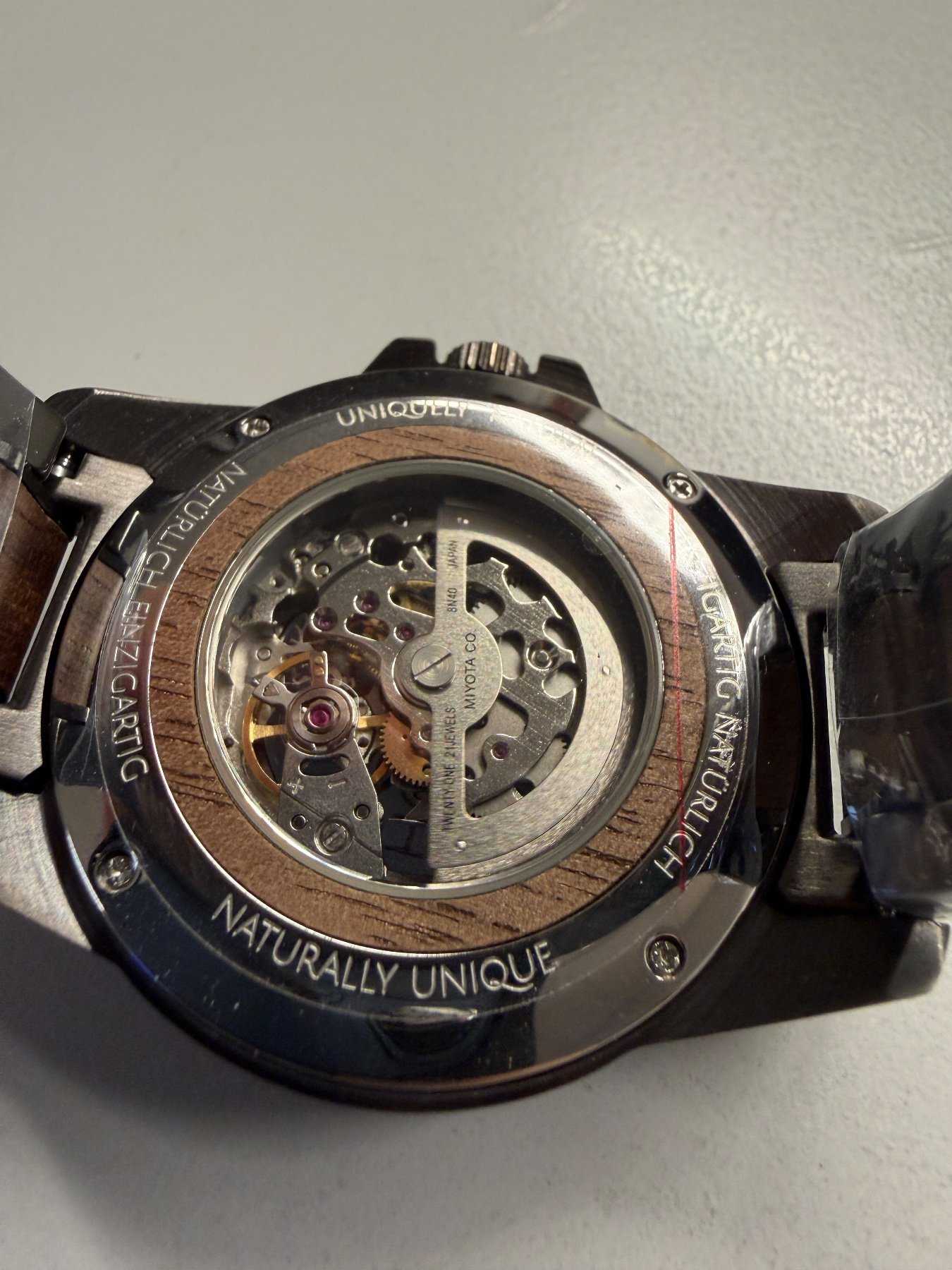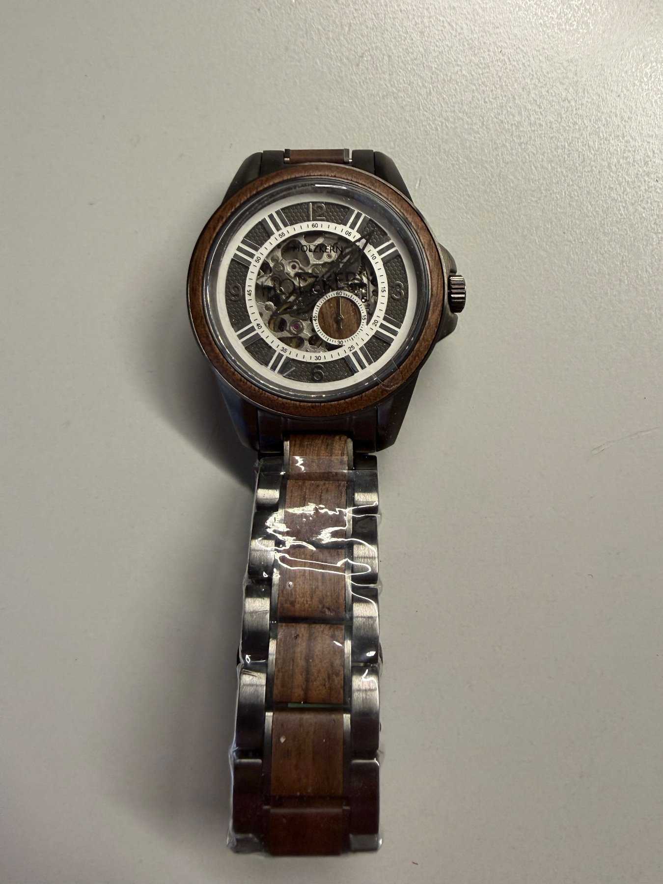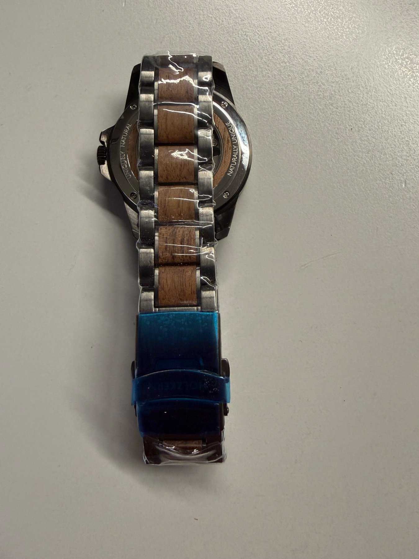 - Holzart unbekannt (Nach Aussage des Herstellers besteht die Uhr aus nachhaltiger Holzherstellung)
