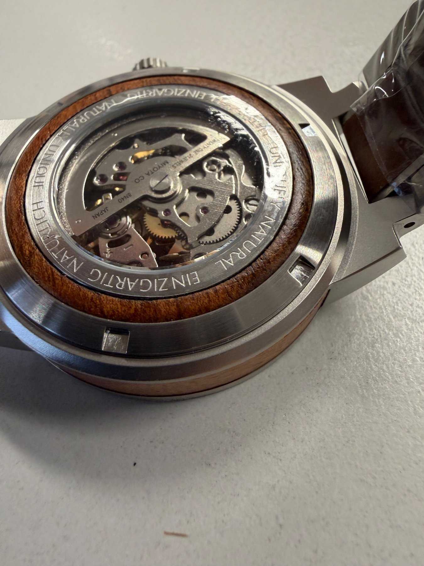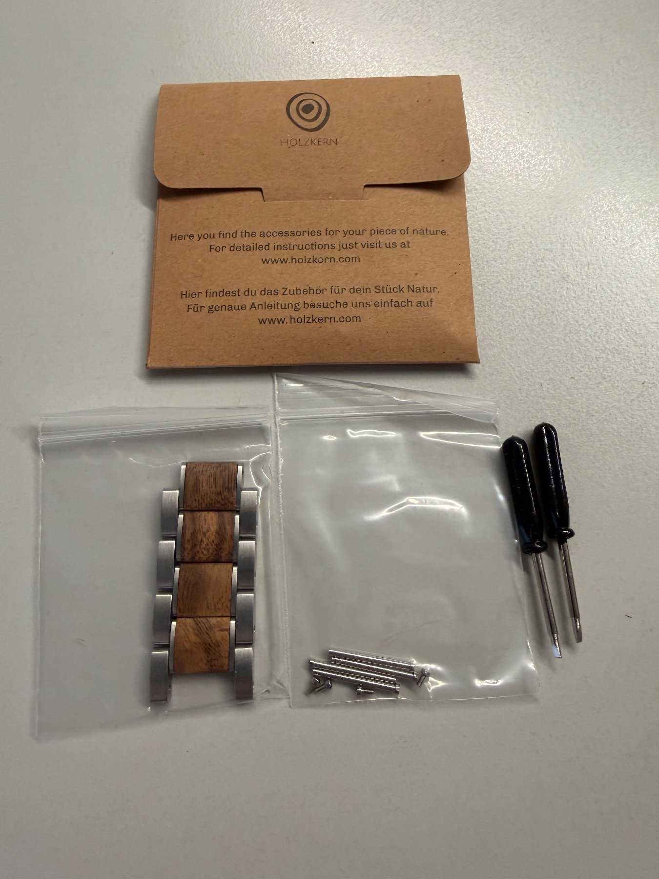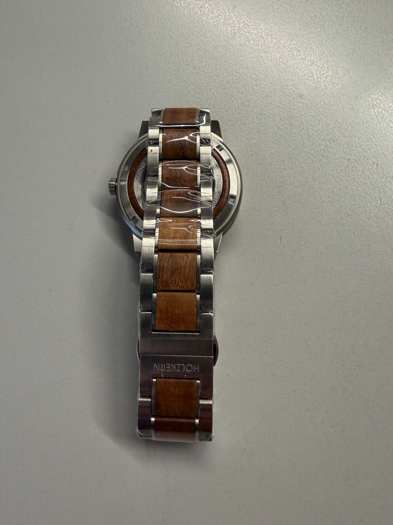 - Holzart unbekannt (Nach Aussage des Herstellers besteht die Uhr aus nachhaltiger Holzherstellung)