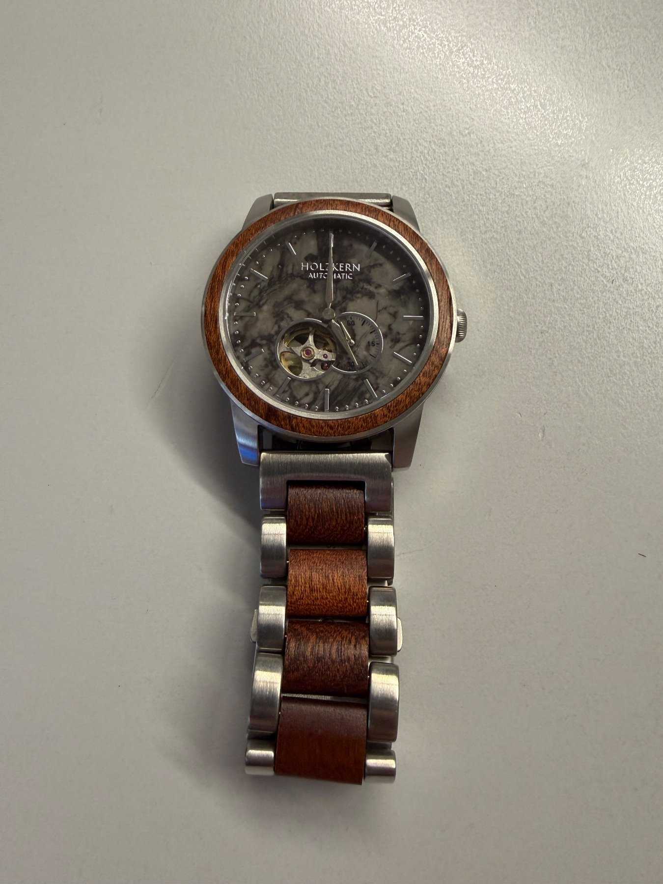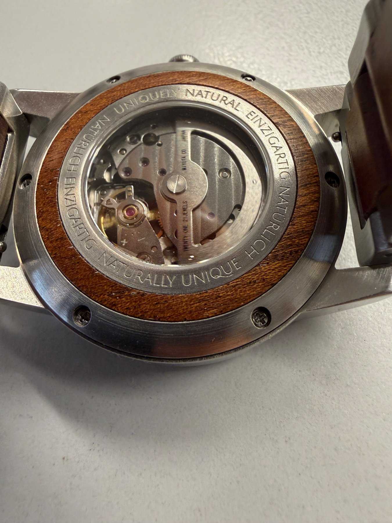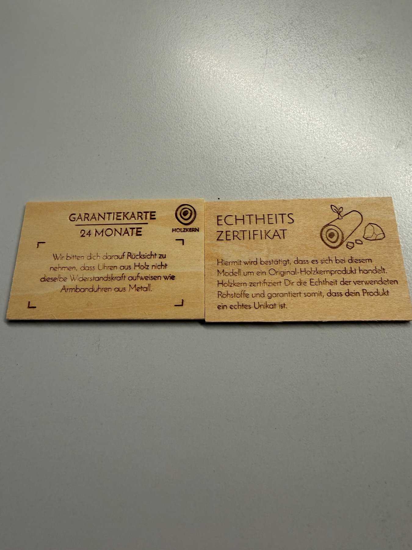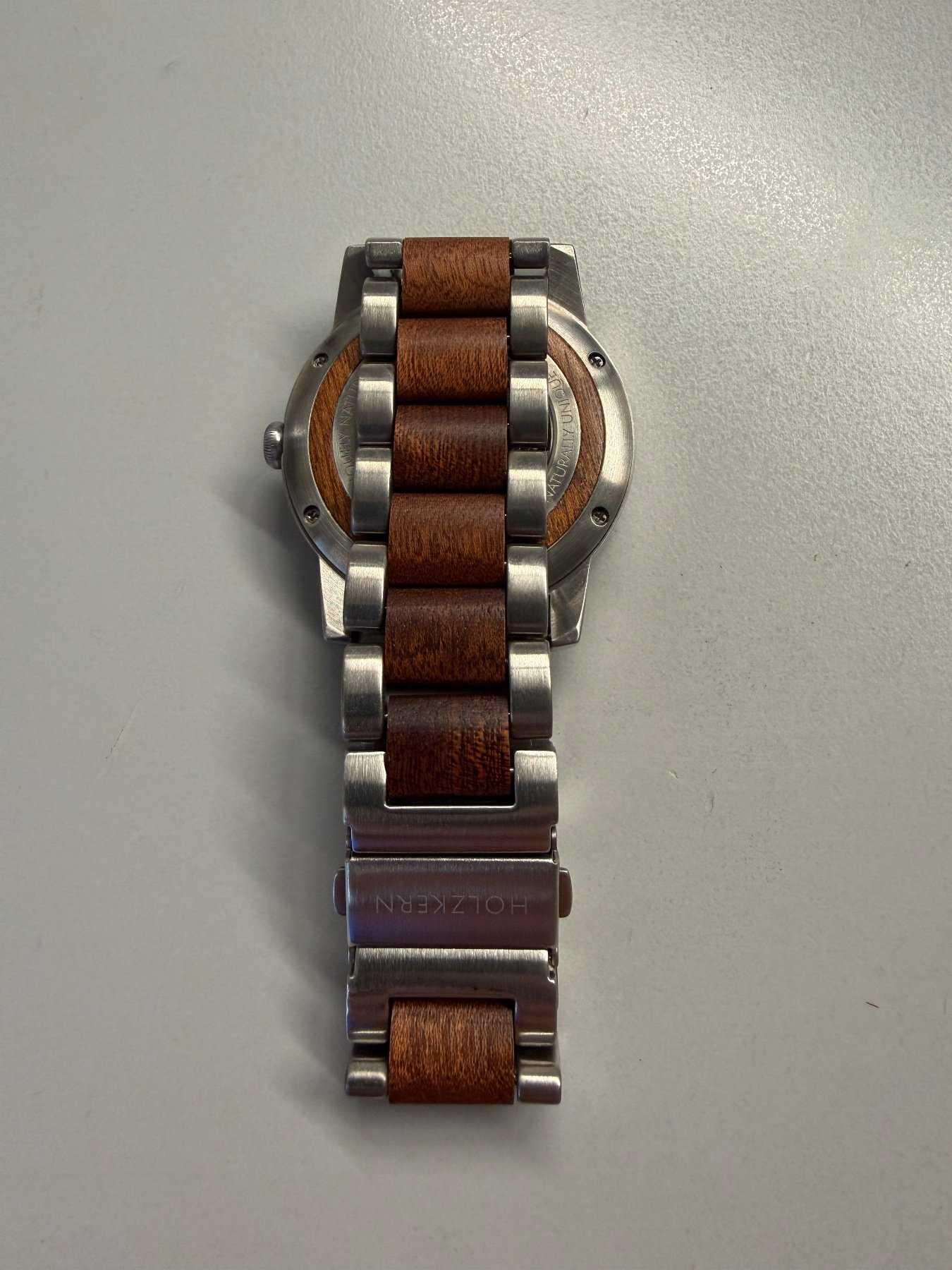 - Holzart unbekannt (Nach Aussage des Herstellers besteht die Uhr aus nachhaltiger Holzherstellung)