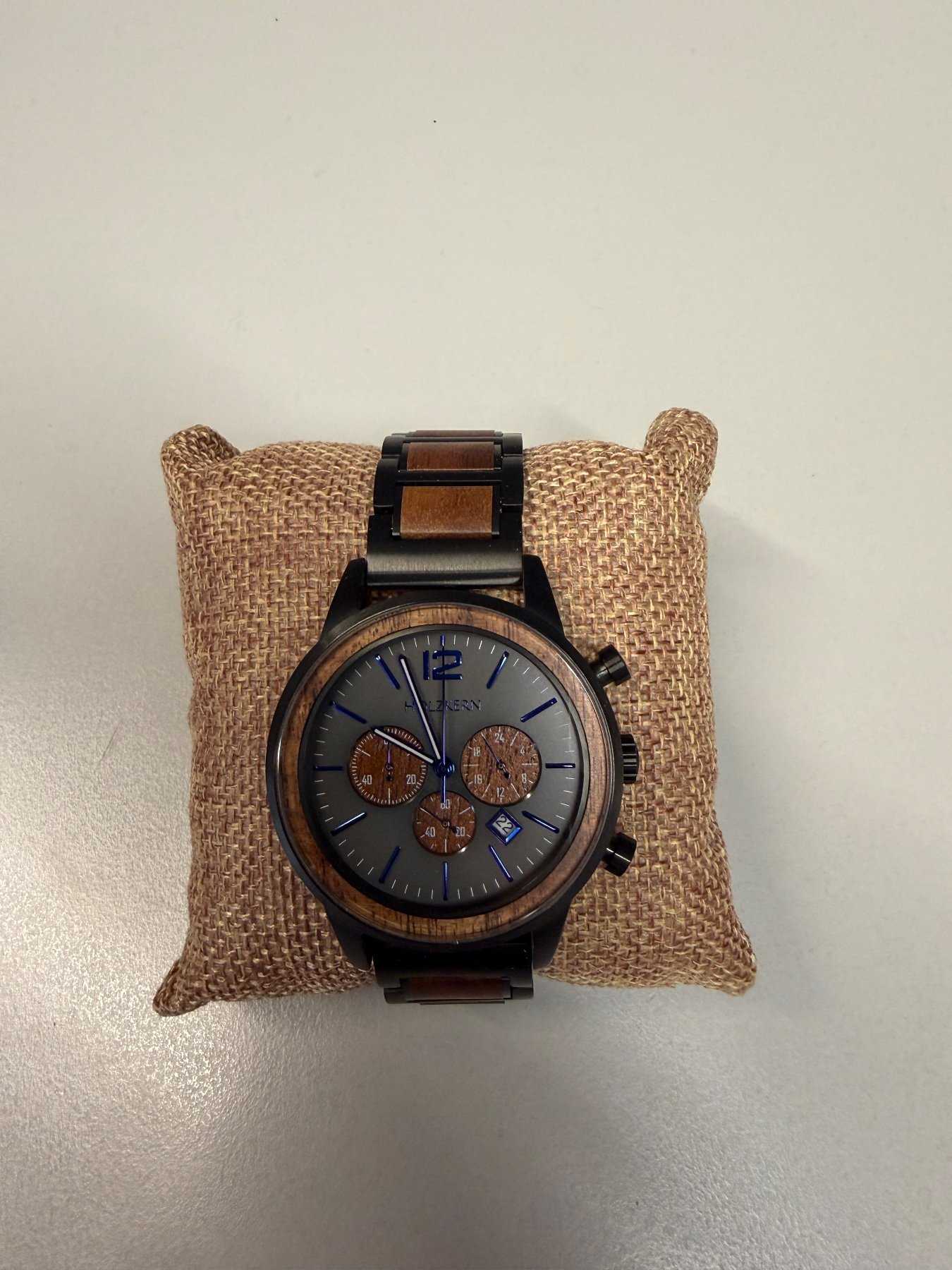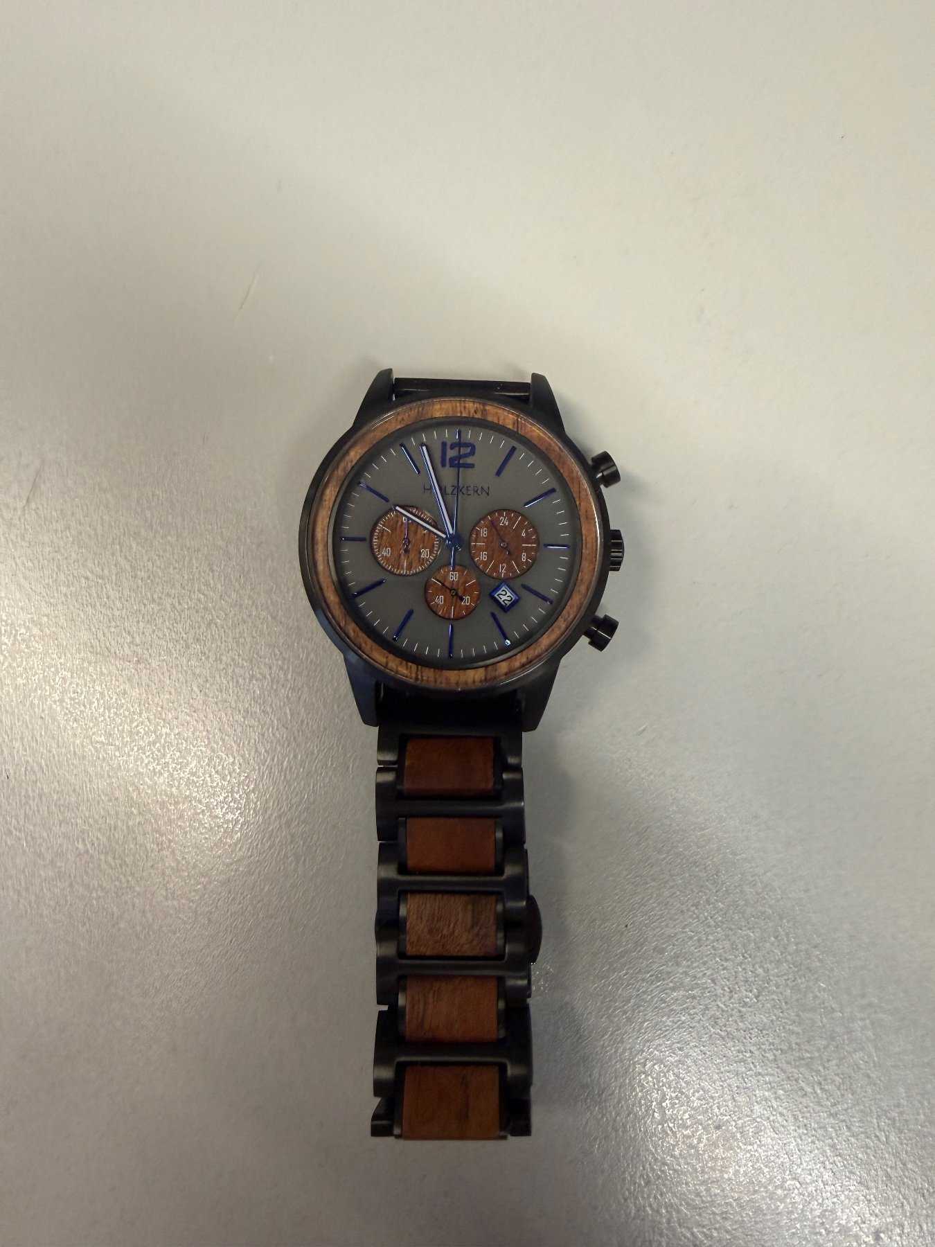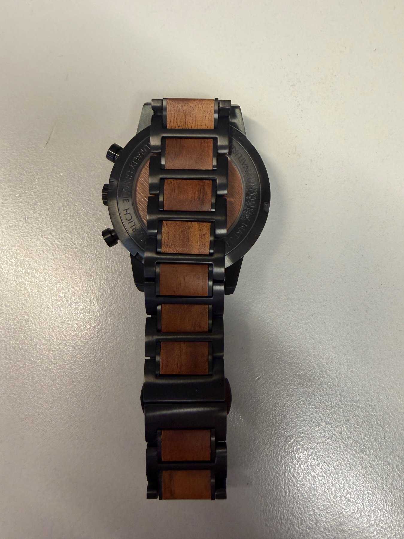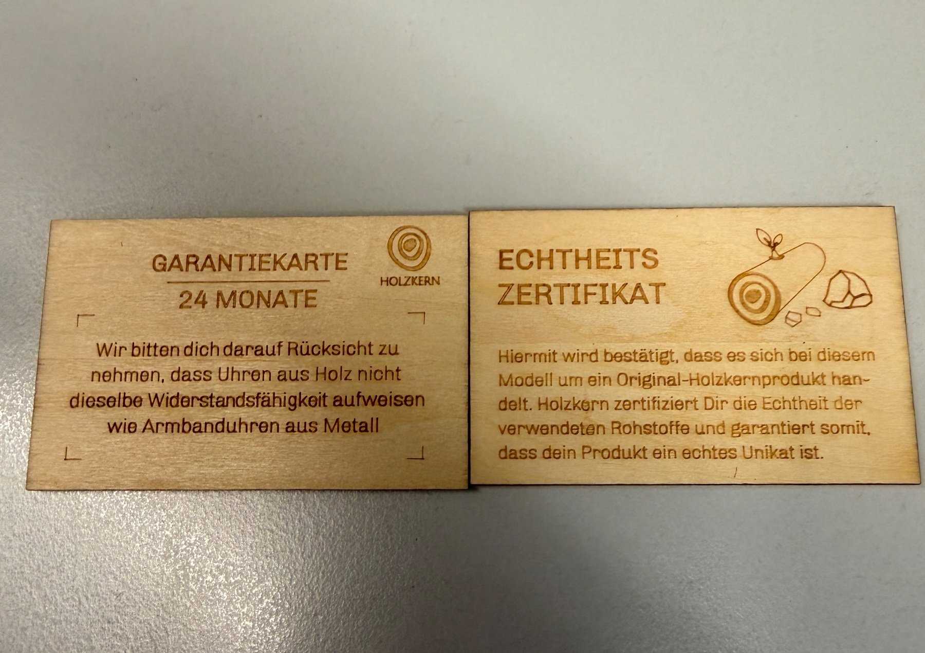 - Holzart unbekannt (Nach Aussage des Herstellers besteht die Uhr aus nachhaltiger Holzherstellung)