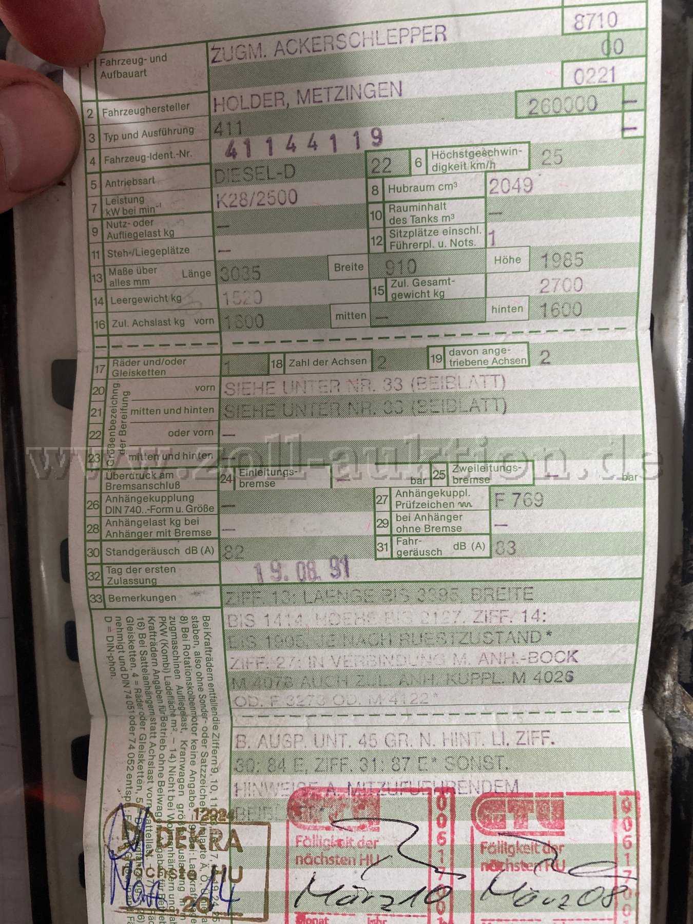 - Hydraulik und Geräteaufhängung Holder-Zweizy. Hydraulik, Betriebsdruck 190bar, Fördermenge 14cm³ (35l/min), Füllmenge 18Ltr. Hubkraft: vorn 7000N, Dreipunkt hinten 18000N, Kat 1 Normdreipunkt