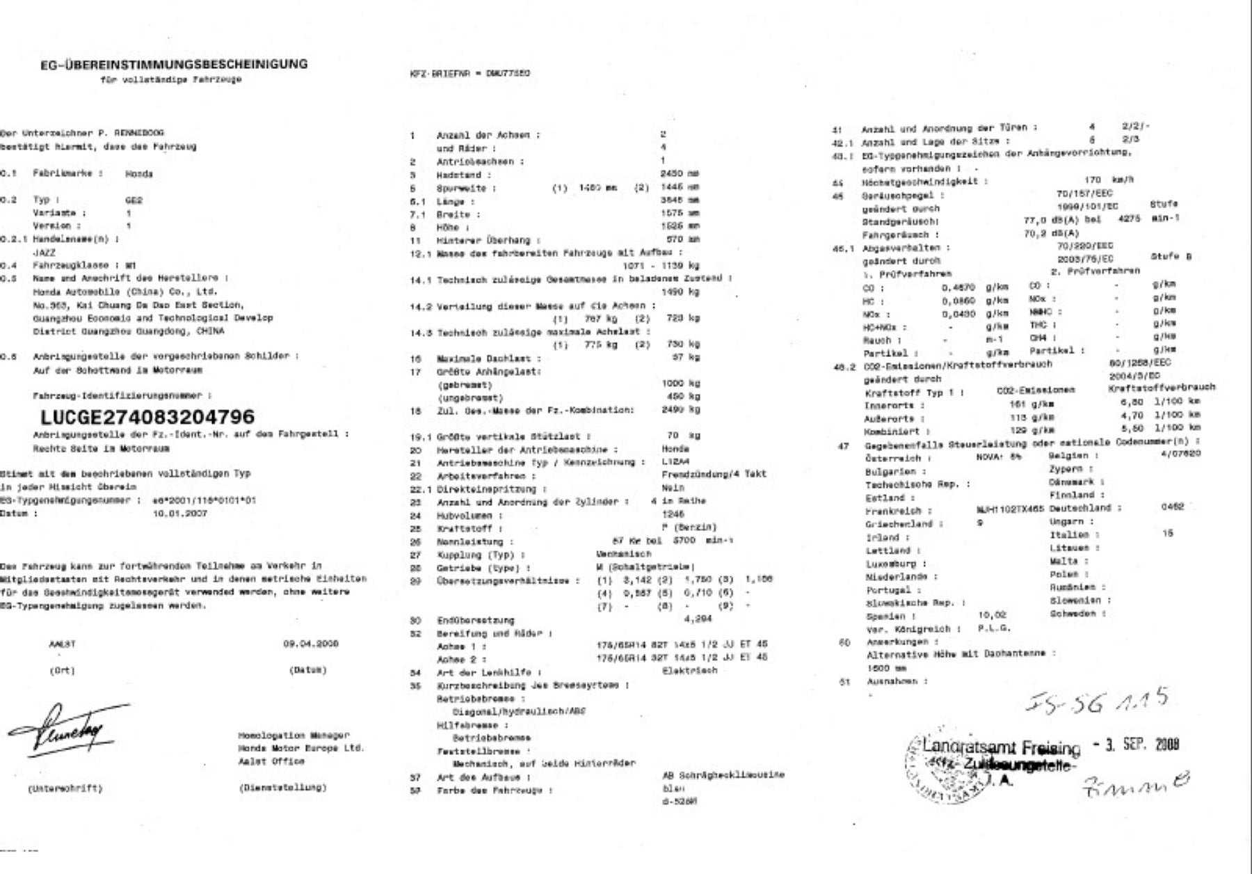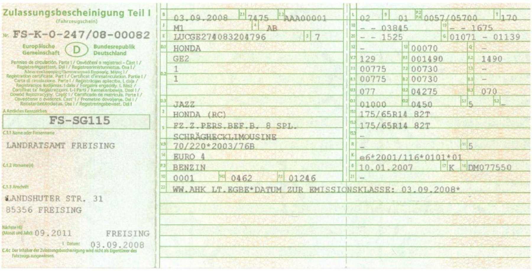 Erstzulassung: 03.09.2008