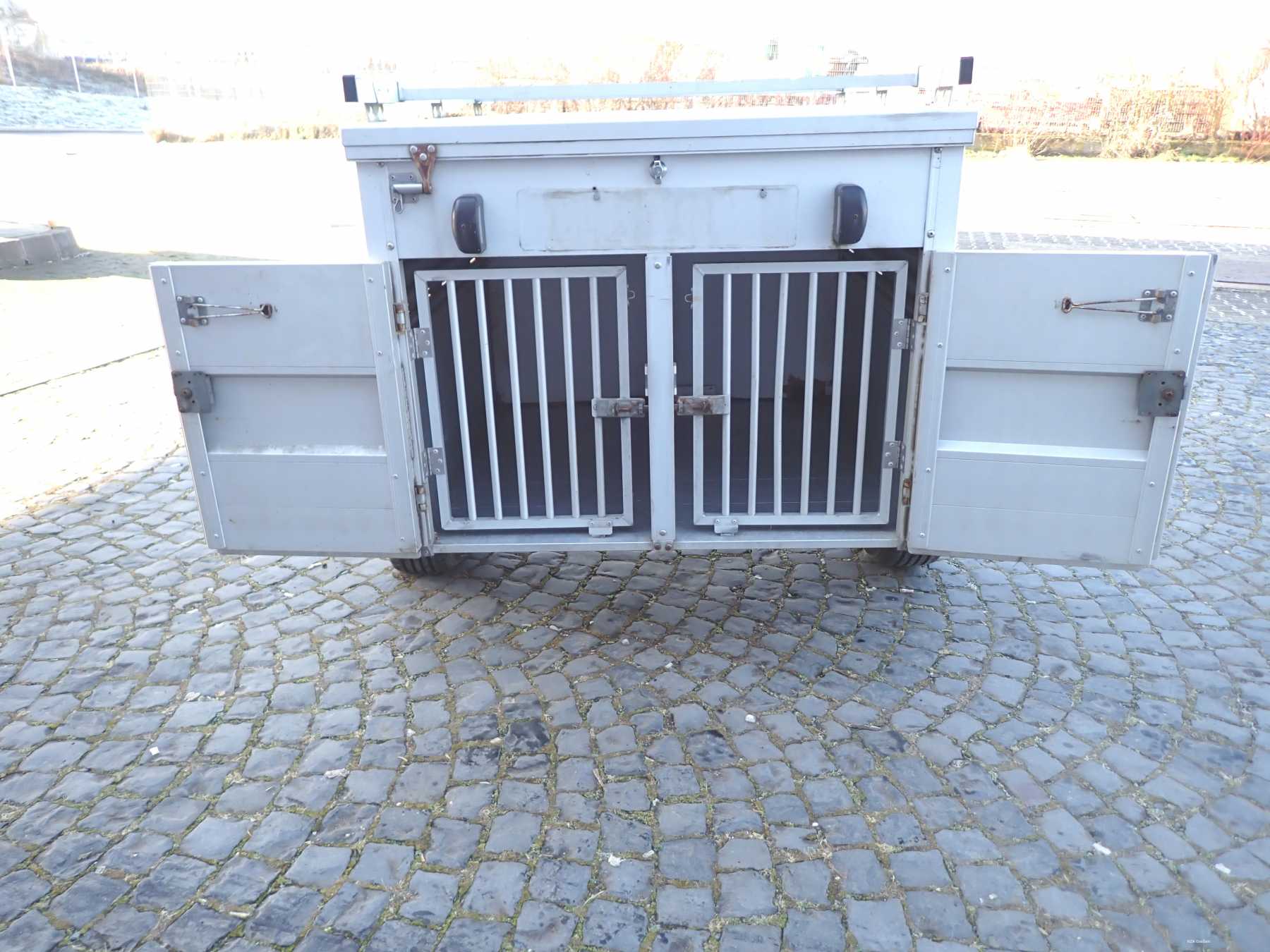 Der Hundetransport-Anhänger befindet sich in einem ungereinigten und nicht aufbereiteten Zustand.