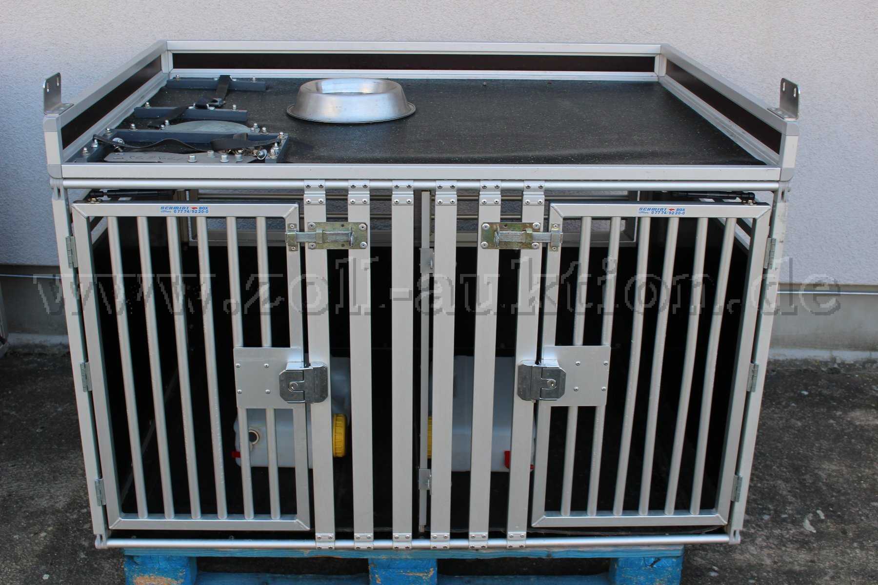 1 gebrauchte Hundetransportbox der Fa. Schmidt Fahrzeugbau GmbH.