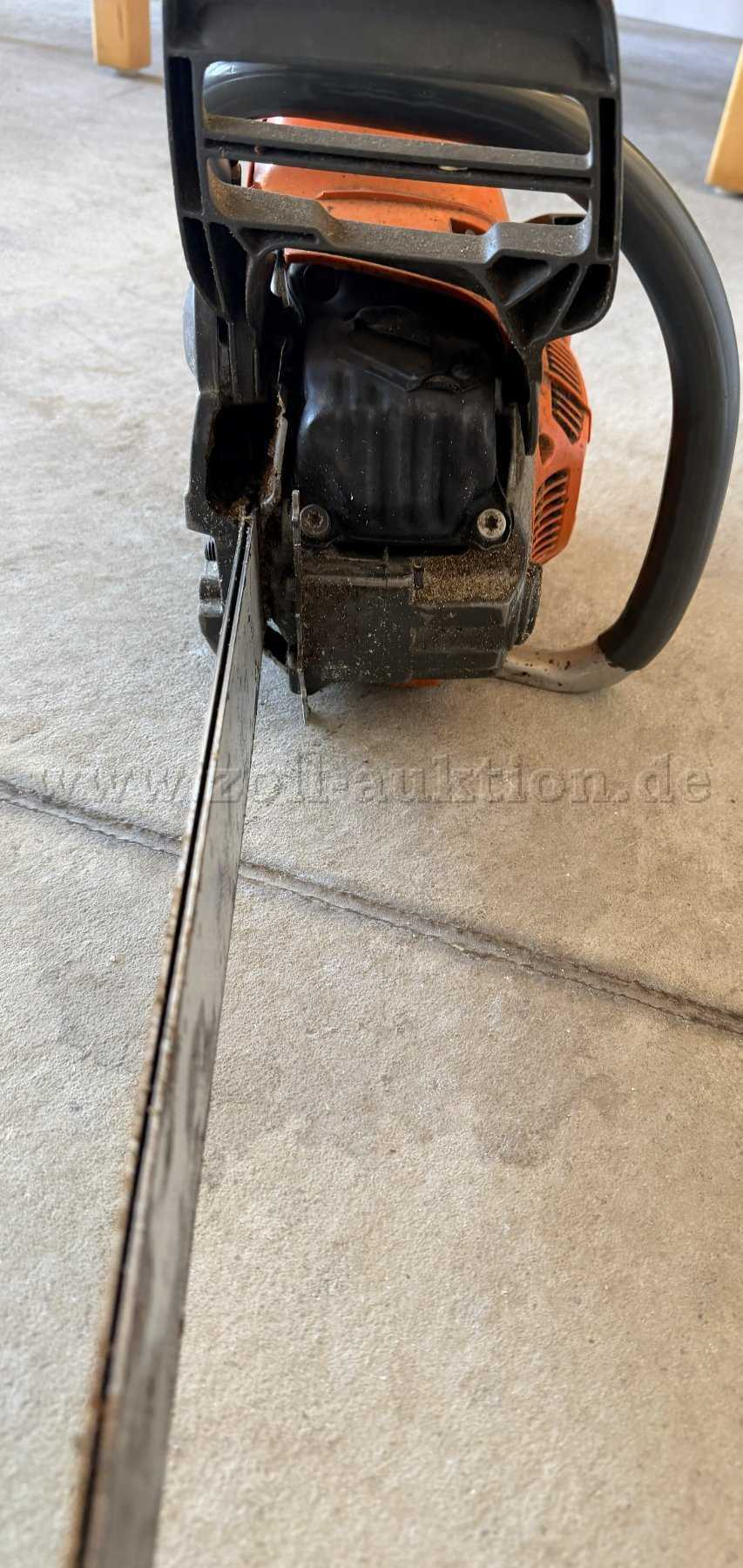 Versteigert wird eine gebrauchte Motorsäge mit Schwert ohne Kette.