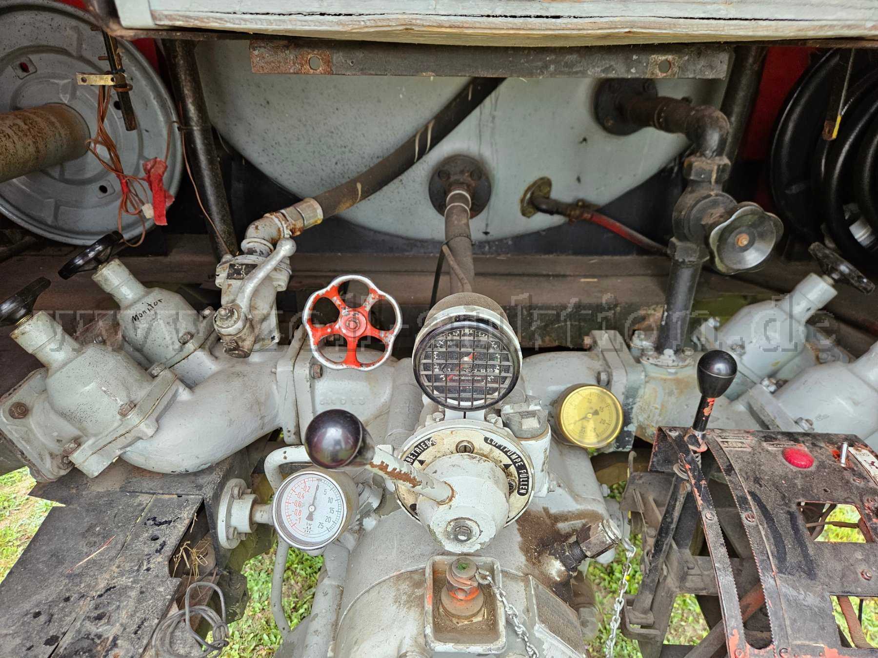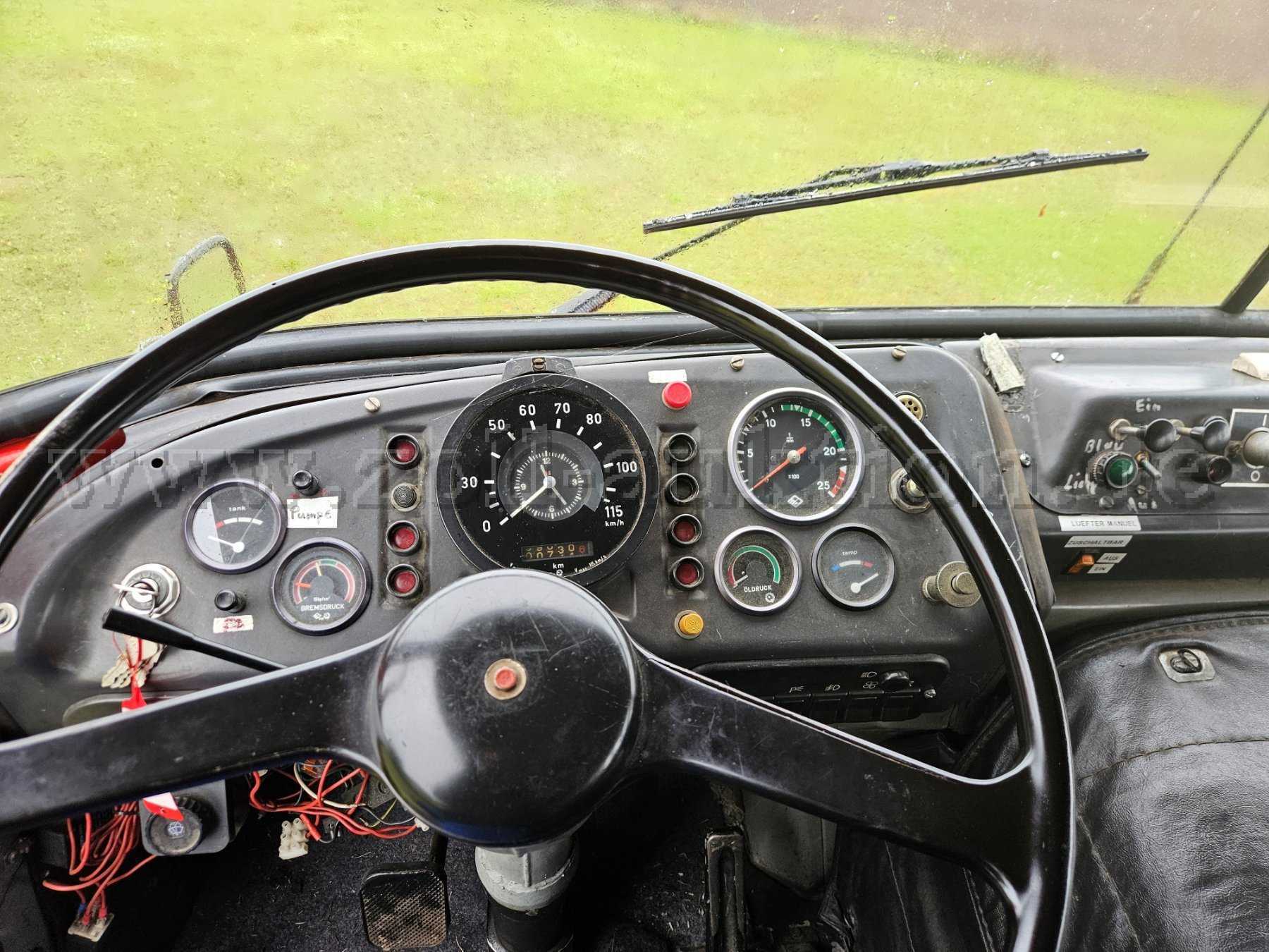 - Innenraum: diverse Bohrlöcher, Halterungen von alten Einbauteilen der Feuerwehr noch vorhanden, Sitzflächen altersbedingt abgenutzt mit Beschädigungen am Leder