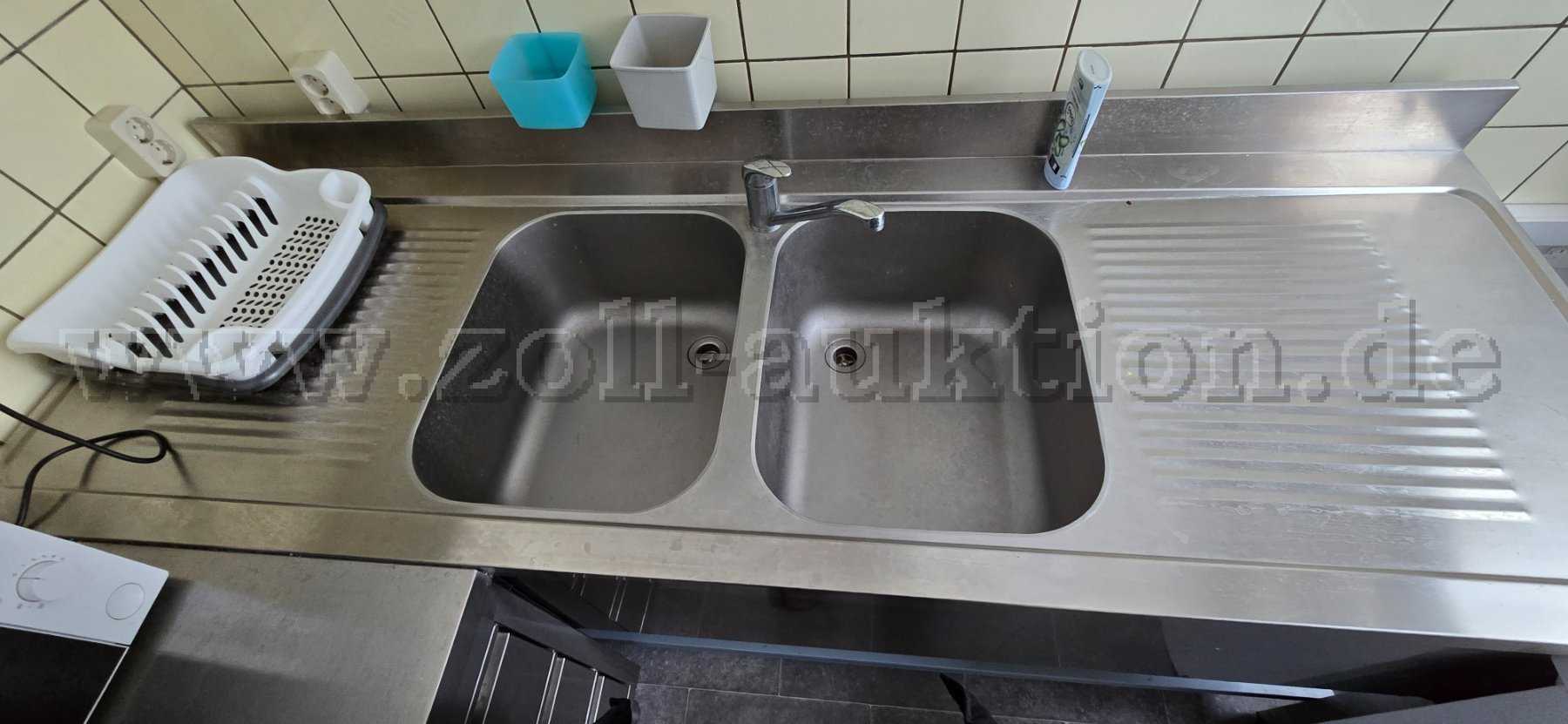 2) Spültisch mit 2 Becken und Grundboden