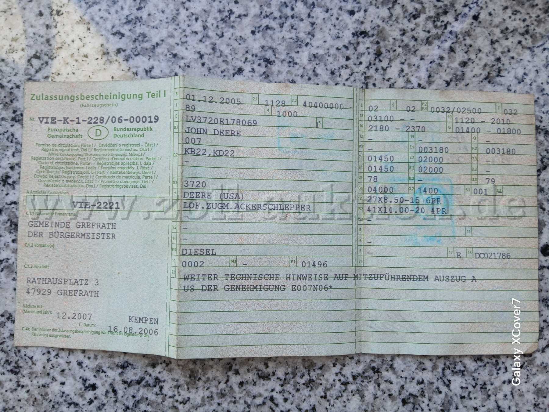 Es wird angeraten den John Deere vor Angebotsabgabe vor Ort zu besichtigen. Eine Probefahrt kann jederzeit durchgeführt werden Das Fahrzeug ist innerhalb von 2 Wochen nach Versteigerungsende abzuholen.