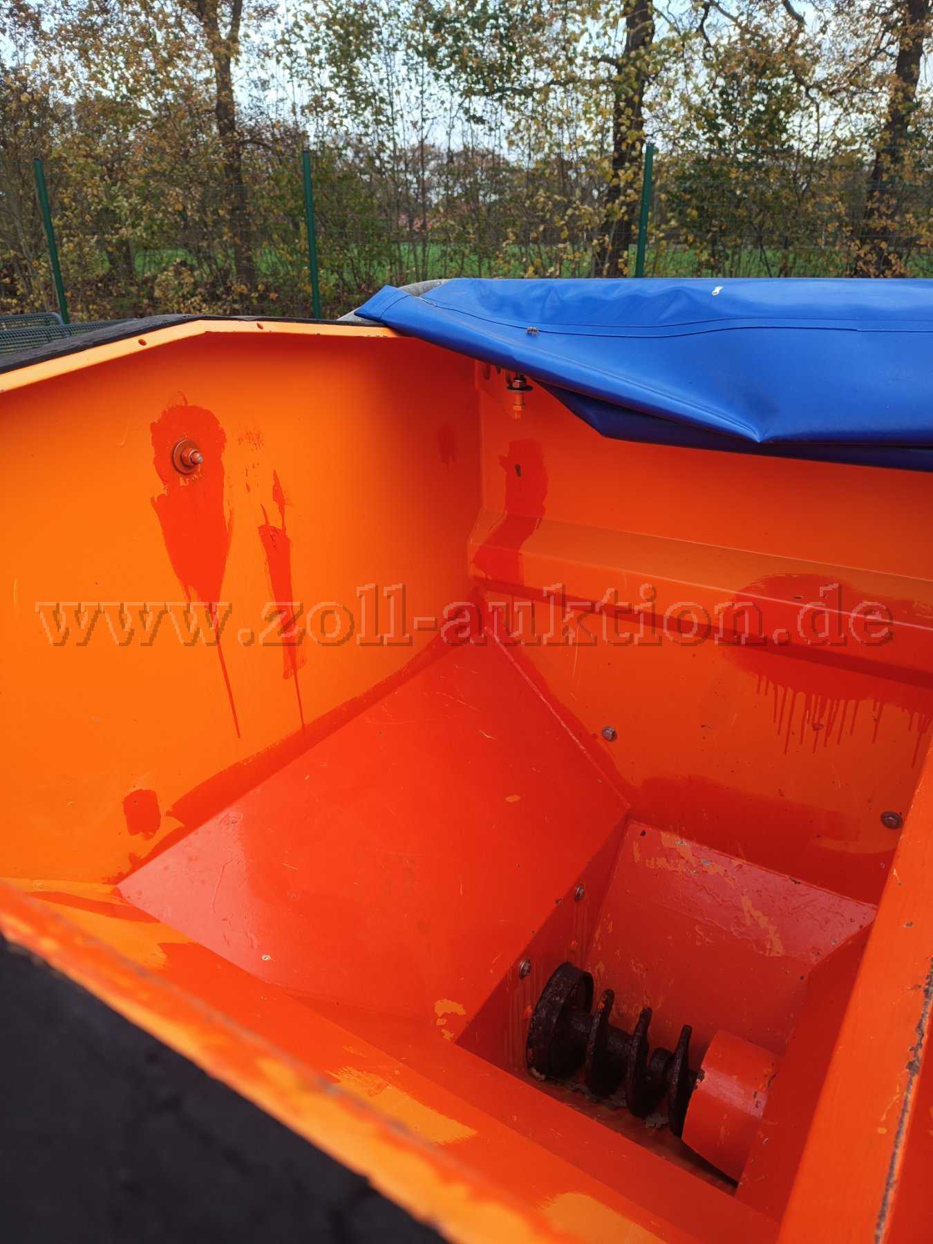 Der Heckanbaustreuer weißt erhebliche Mängel durch Rost auf, beeinträchtigt aber nicht die Funktion.