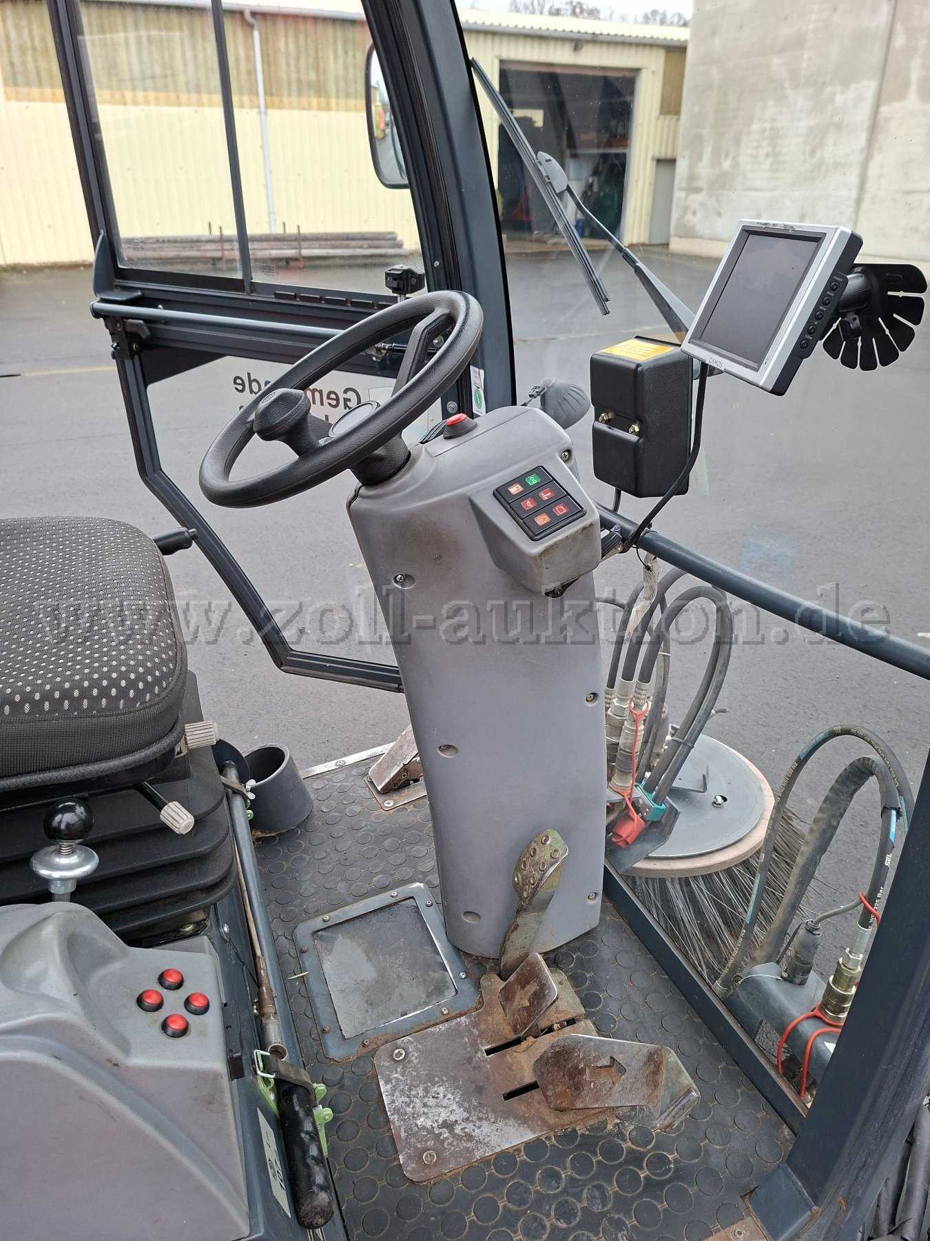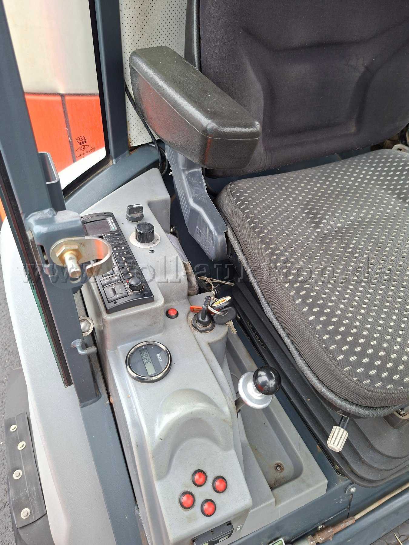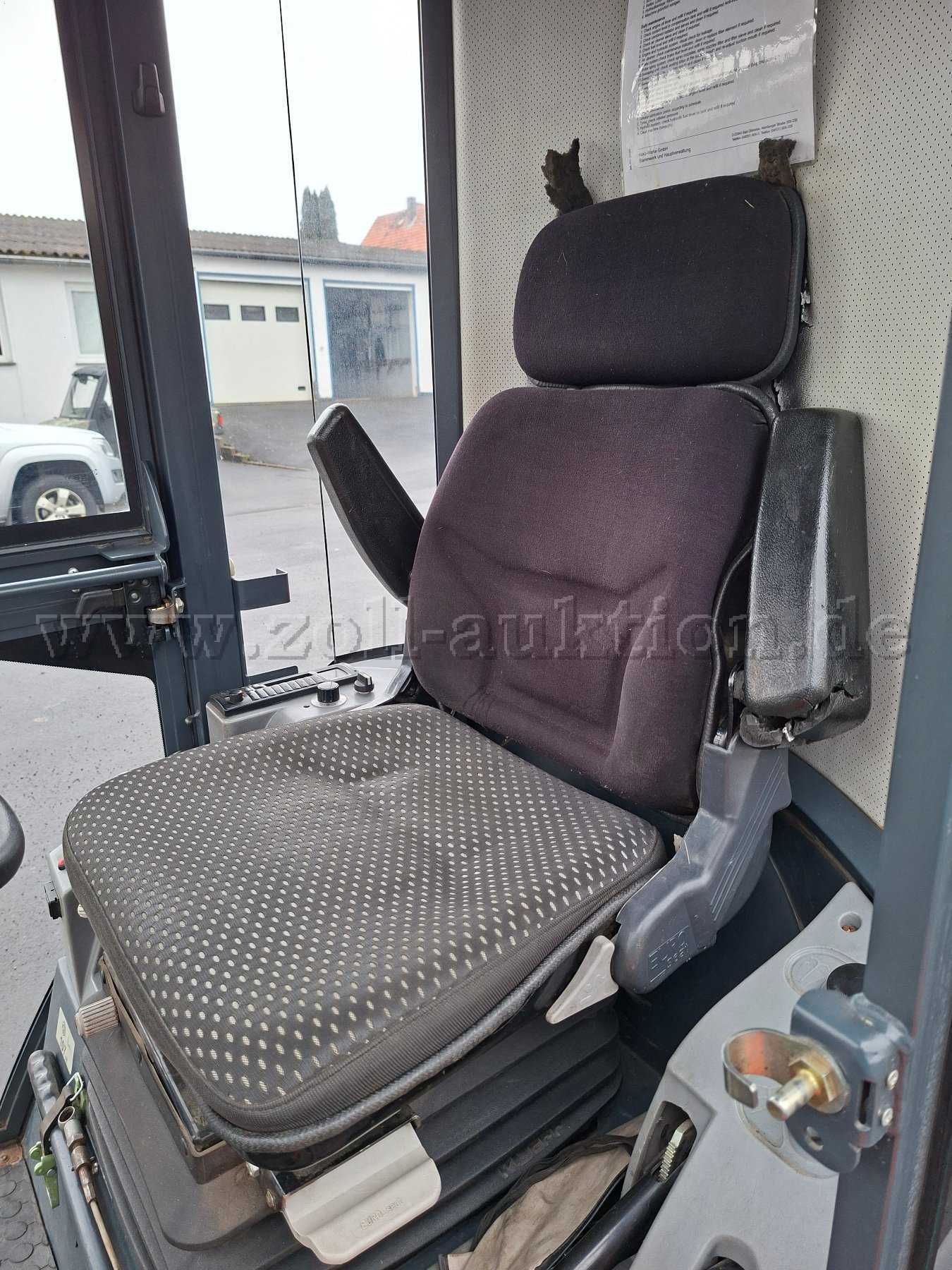 Fahrersitz leicht verschlissen, linke Armlehen defekt Gebrauchsspuren in der Fahrerkabine.