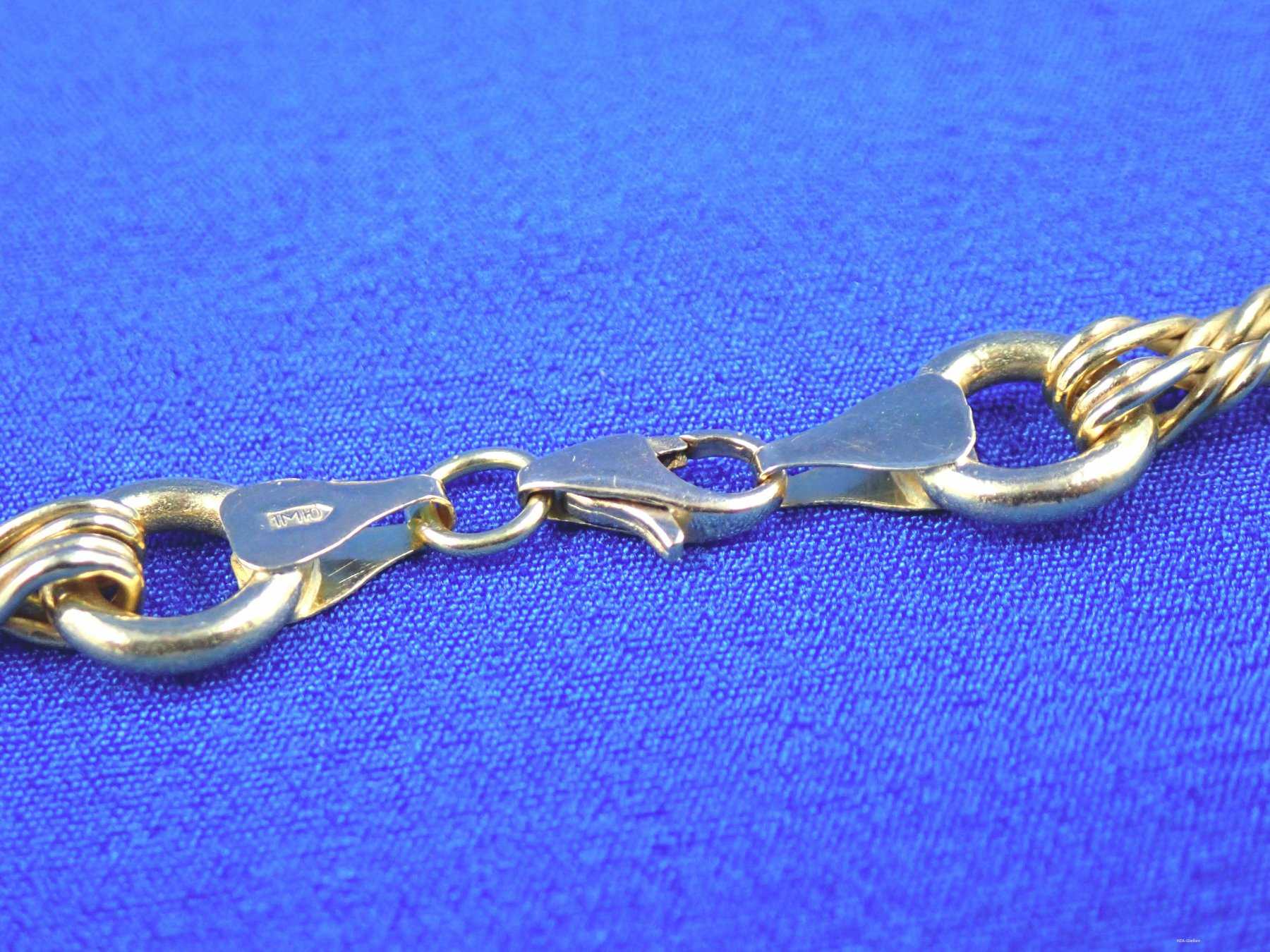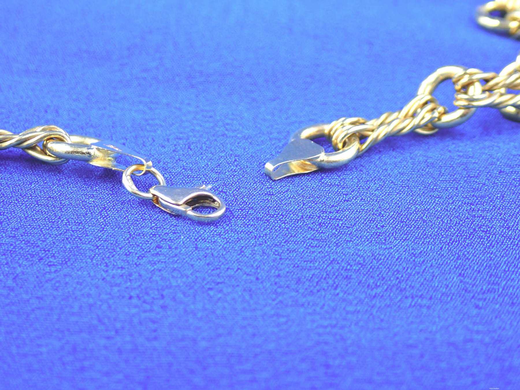 Die Kette besteht aus ineinander verschlungenen Gliedern, die einem gedrehten Seil ähneln.