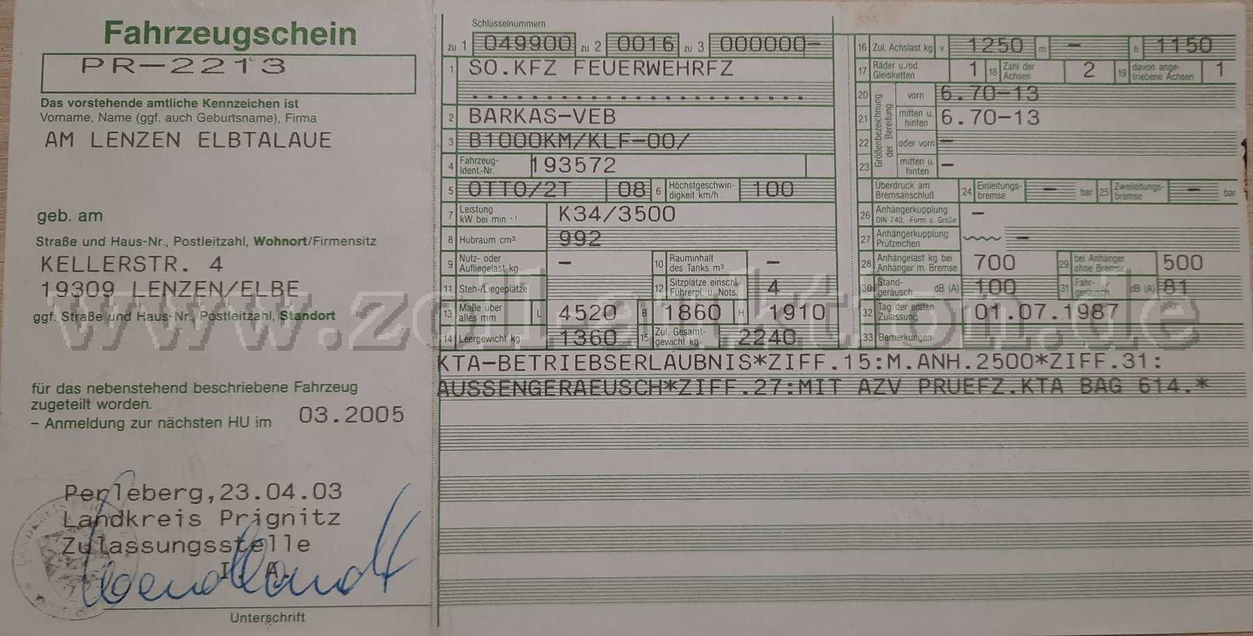 Angeboten wird ein Kleinlöschfahrzeug des Herstellers Barkas B1000