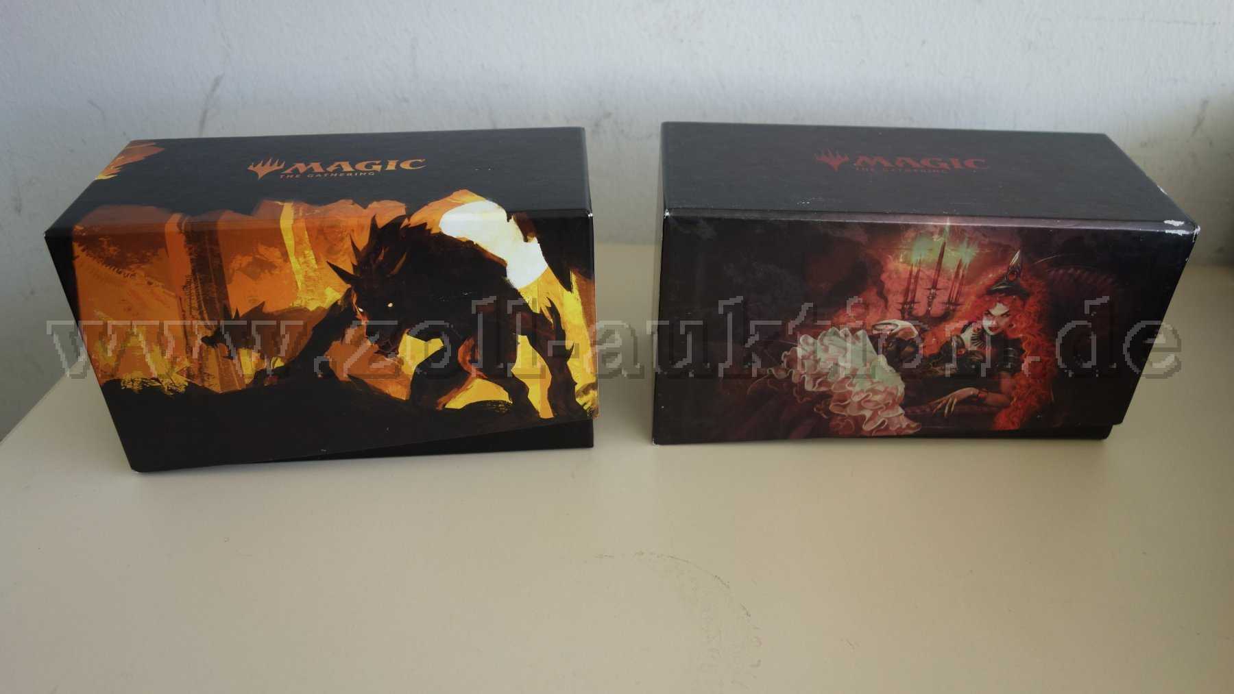 Gebrauchsspuren sind vorhanden (Boxen an Kanten angestoßen, einige Karten leicht gebogen).