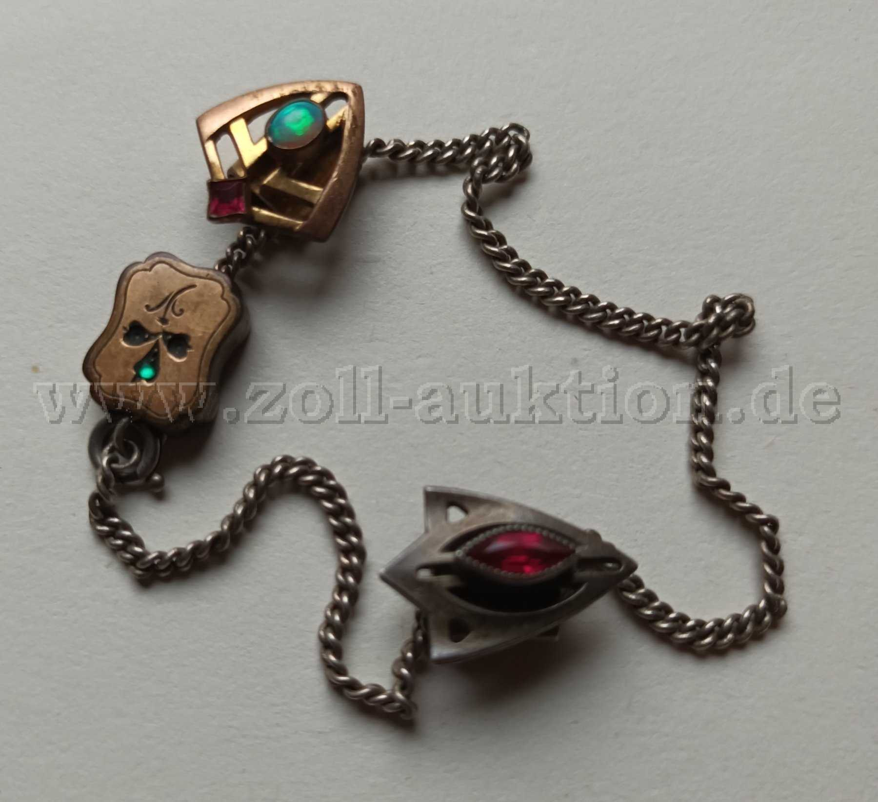 - 3 Uhrkettenschieber Double mit verschiedenfarbigen Steinen (vergoldet) 6,60 Gramm