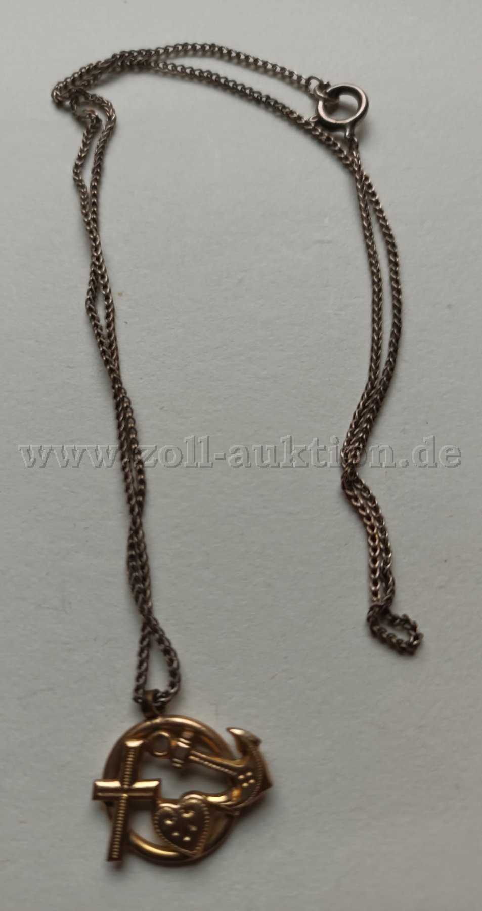- silberfarbene Kette (Punze 800) mit goldfarbenem Anhänger "Seemannsgrab" 3,33 Gramm