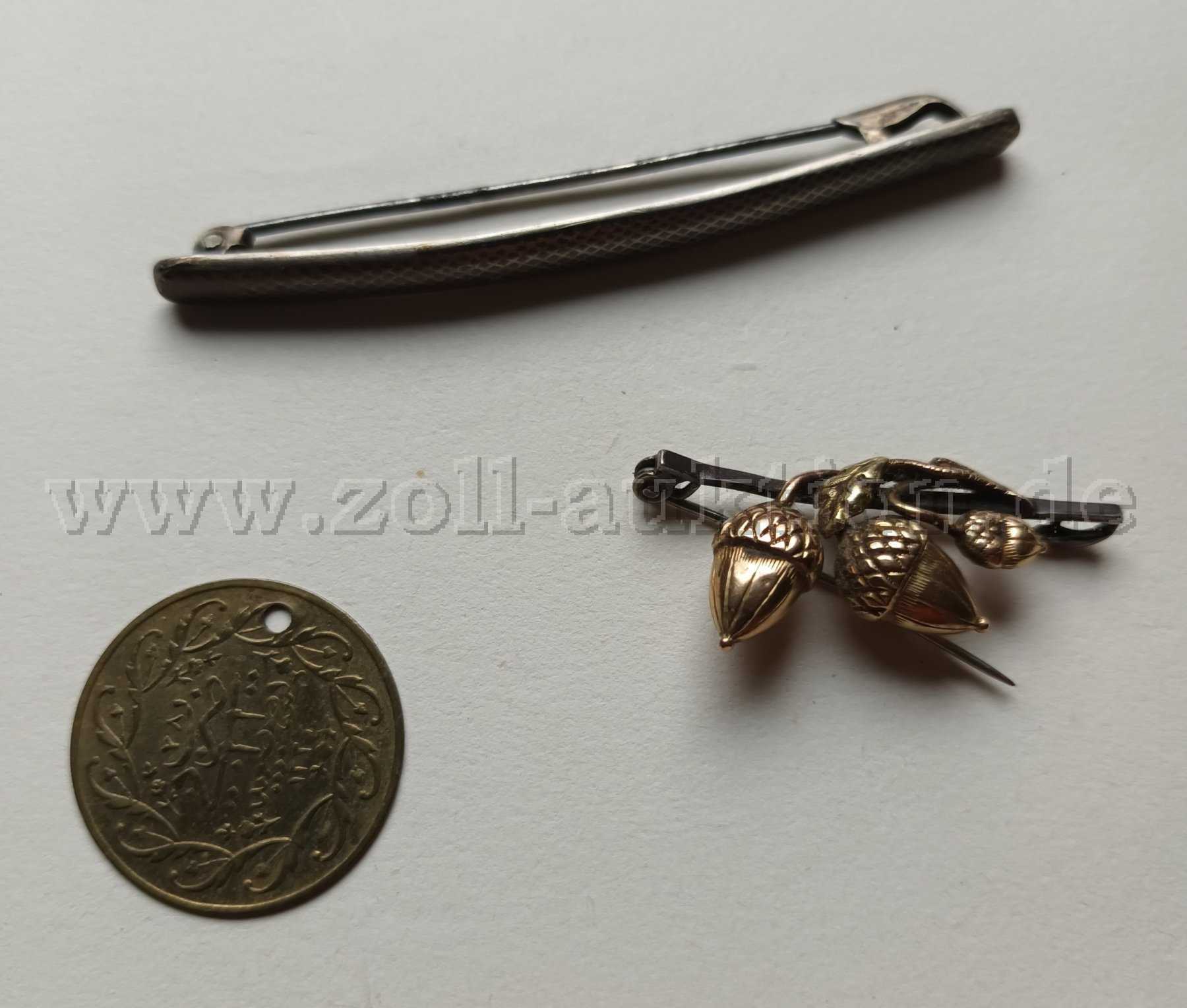 - goldfarbene Anstecknadel mit 3 Eicheln unecht, ca. 1 gr. Gold 585 2,73 Gramm