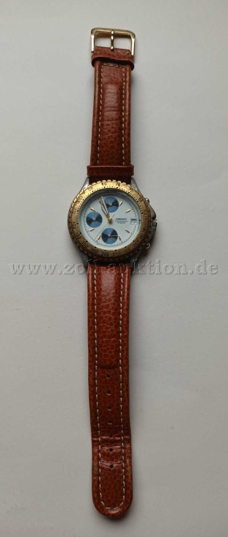 - Herren Armbanduhr Ascot, Serie 0300, 30 Meter Wasserdichtigkeit, Edelstahl mit Goldoptik-Lünette