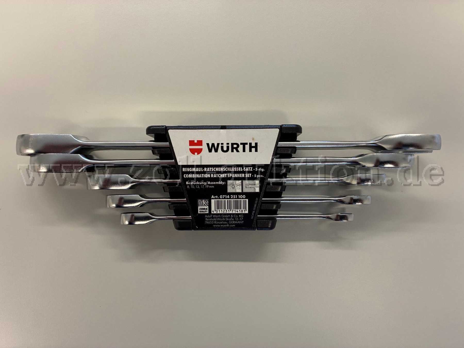 WÜRTH Ring Ratschenschlüssel Satz / Set 5 Teilig 8-10-13-17-19 mm mit Halter / neuwertig