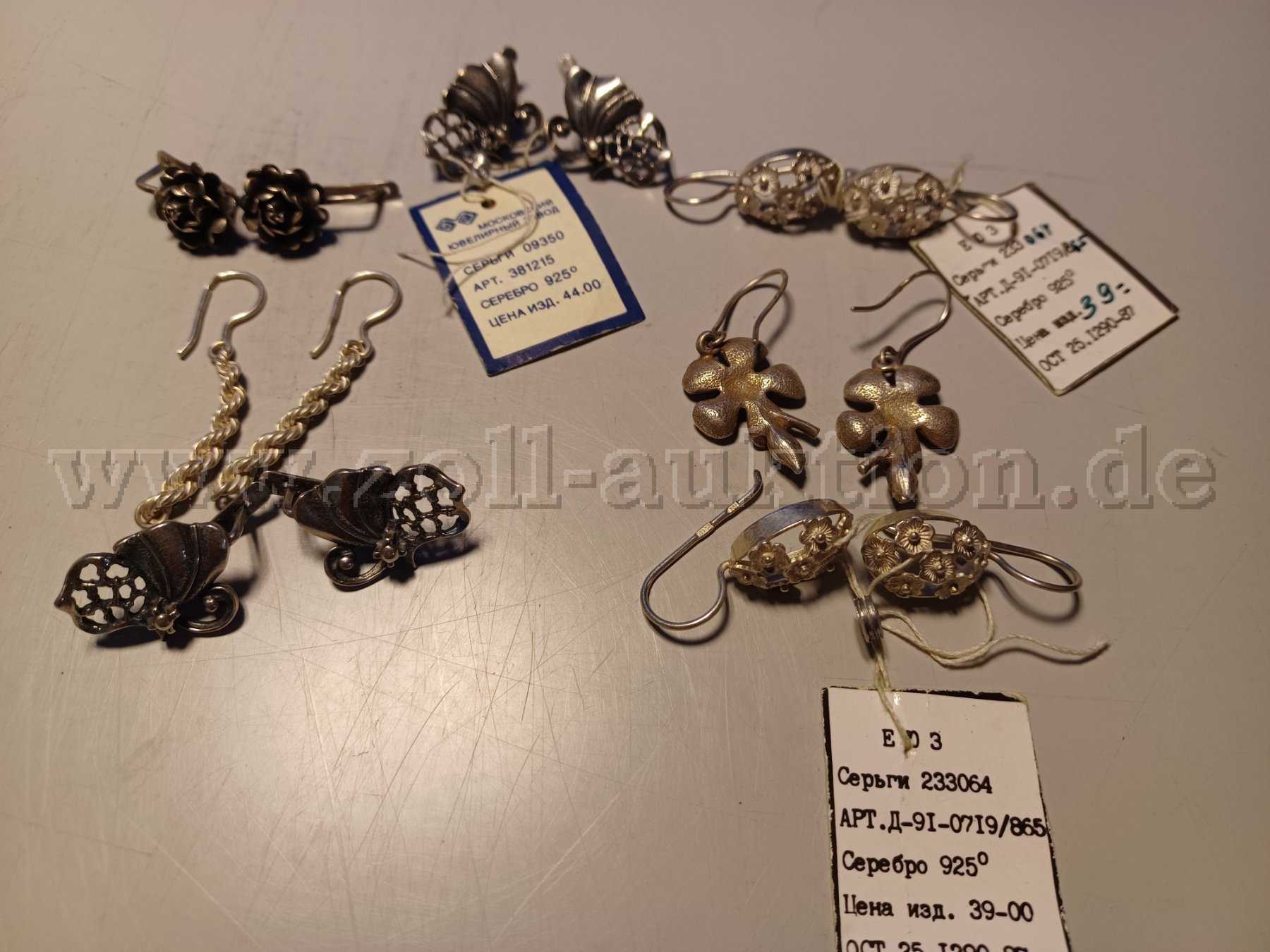 Angeboten werden 7 Paar Ohrringe aus 925er Silber.