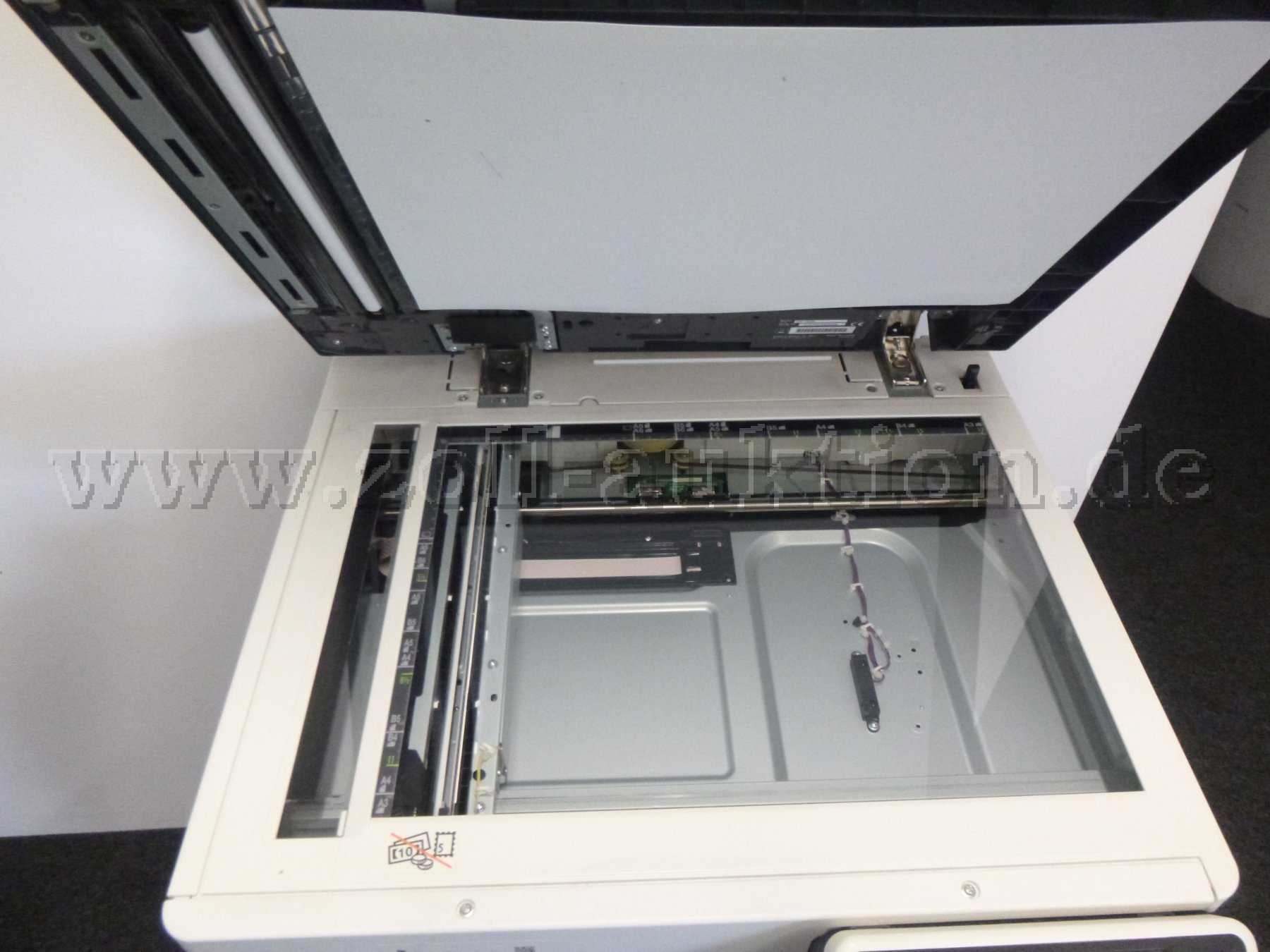 Der Kopierer ist gebraucht und weist am Gehäuse nutzungsbedingte Gebrauchsspuren, in Form von Kratzern, Beulen, Verschmutzungen und Beklebungen, auf.