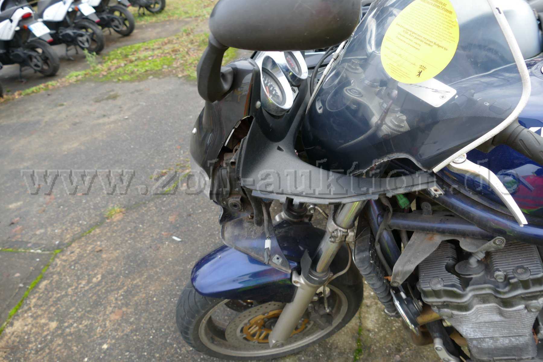 Das Fahrzeug weist altersbedingte Gebrauchs- und Abnutzungsspuren auf. Es weist Dellen und Lackschäden an der Verkleidung auf. Das Krad ist verschmutzt.