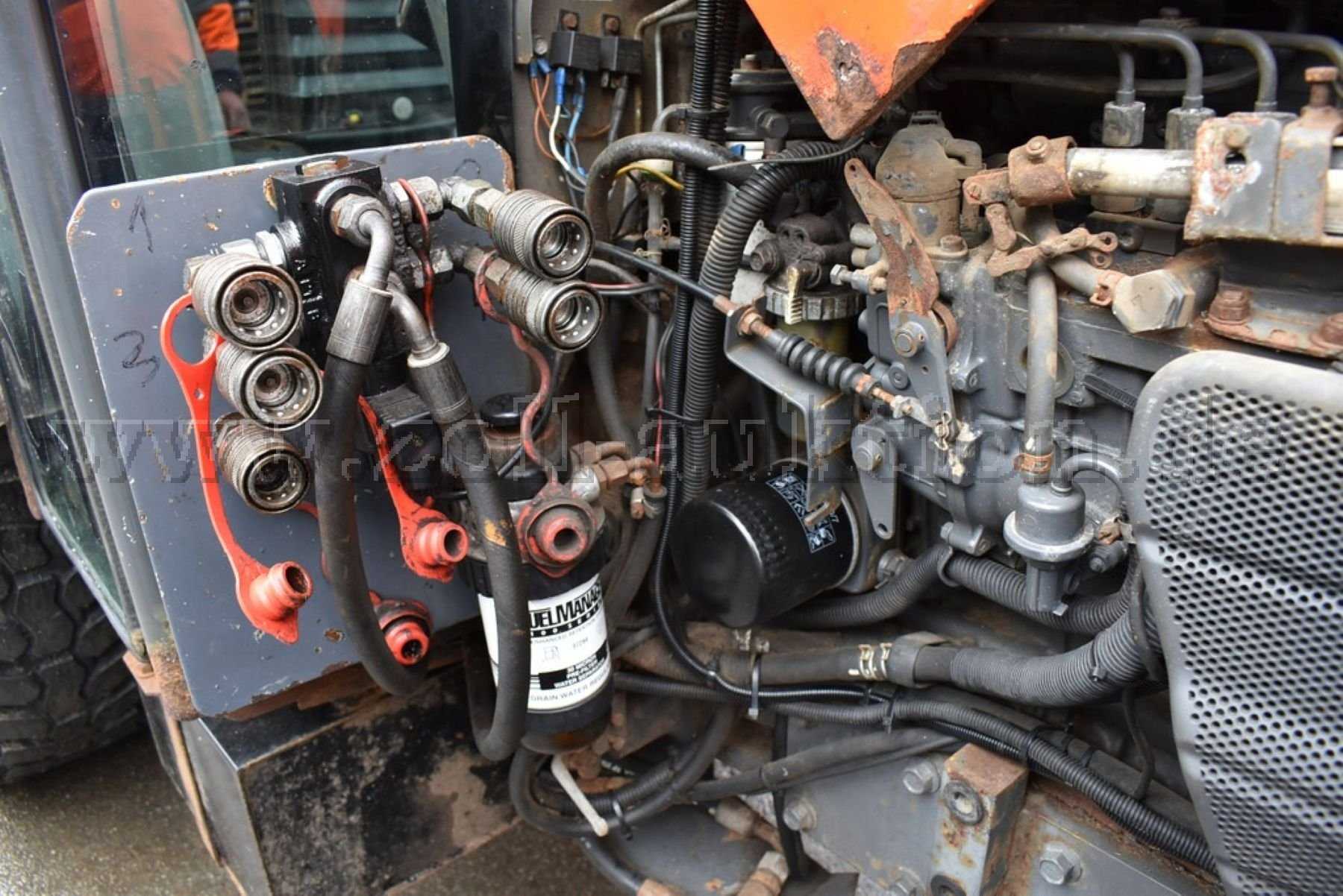 Alters- und nutzungsartbedingte Gebrauchsspuren mit örtlichen Anstoßspuren im Außenbereich der Karosserie sowie im Arbeitsbereich/in Teilbereichen des Aufbaus/Unterflur, Führungen, Gelenke, Kraftheber front-/heckseitig, beginnende Korrosion mit erhebl. Rostansatz. Motorhaube teilw. durchgerostet. Kotflügel hinten massive Korrosionsspuren. Abgesehen von den beschriebenen Schäden/Mängeln weist das Fahrzeug/Objekt einen, bezogen auf Alter und Nutzung, unterdurchschnittlich bis mäßigen Gesamtzustand auf. Es sind weder optisch noch akustisch weitere Mängel feststellbar, für versteckte Mängel kann keine Haftung übernommen werden. Das Fahrzeug befindet sich in einem fahrfähigen, aber nicht betriebssicheren Zustand.