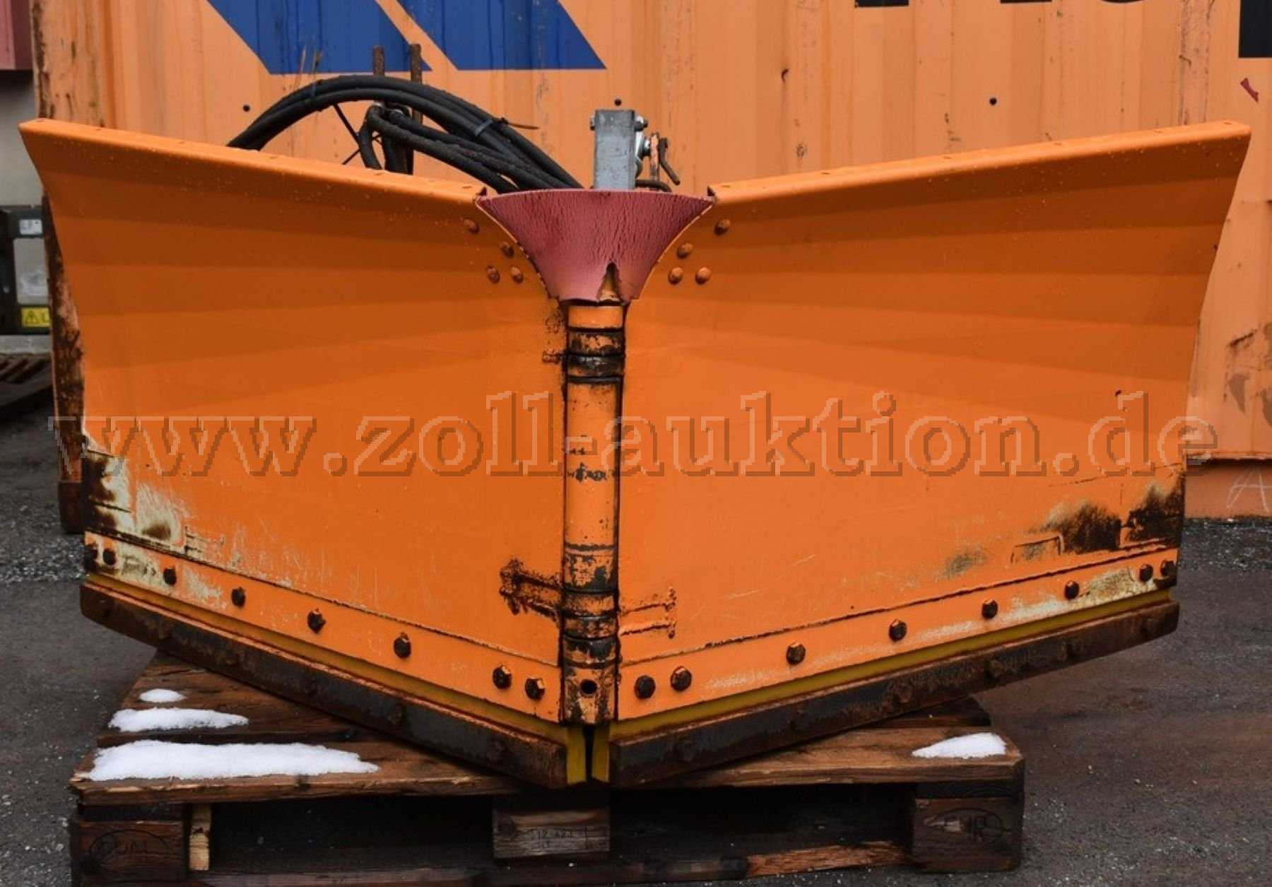 Schneepflug/Variopflug Schmidt: 2 x 105 cm Breite. Korrosion/Rostansatz an Aufbau mit starken einsatzbedingten Gebrauchsspuren, Korrosion an Hydraulikzylinder, Anstoßspuren