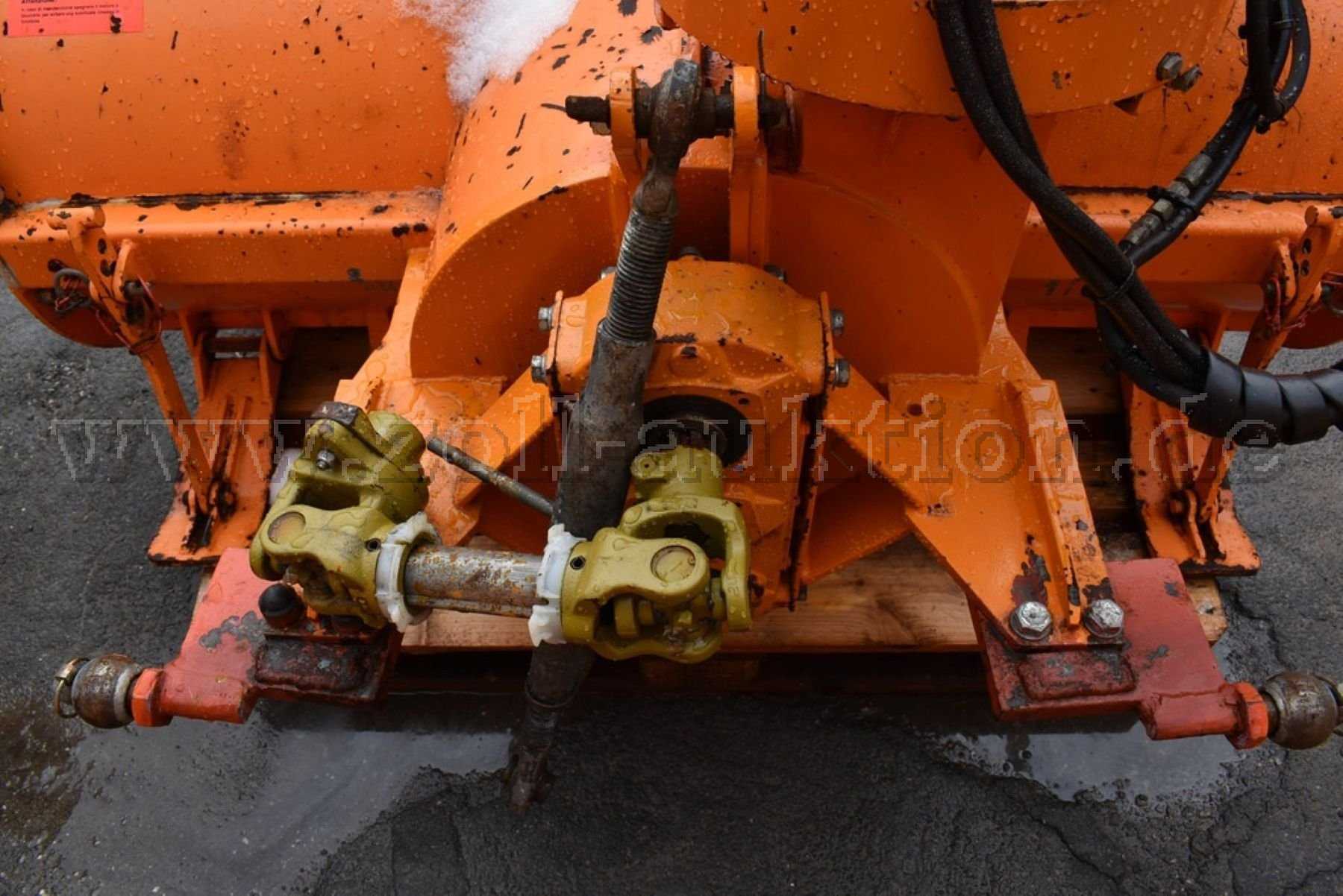 Schneefräse Westa: Korrosion/Rostansatz an Aufbau mit starken einsatzbedingten Gebrauchsspuren in Bereich der Fräswalze, Auswurfkanal