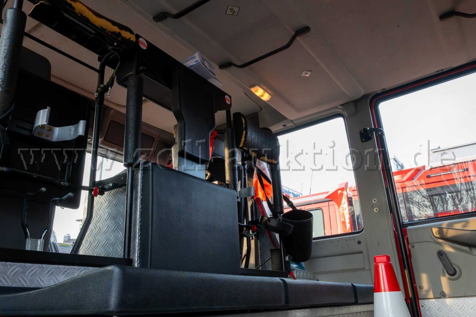 Deutliche Gebrauchsspuren sind an den Sitzbezügen Fahrer- und Beifahrersitz sowie an den Kopfstützen der Rückbank (Atemschutzgeräteträgerplätze) vorhanden.