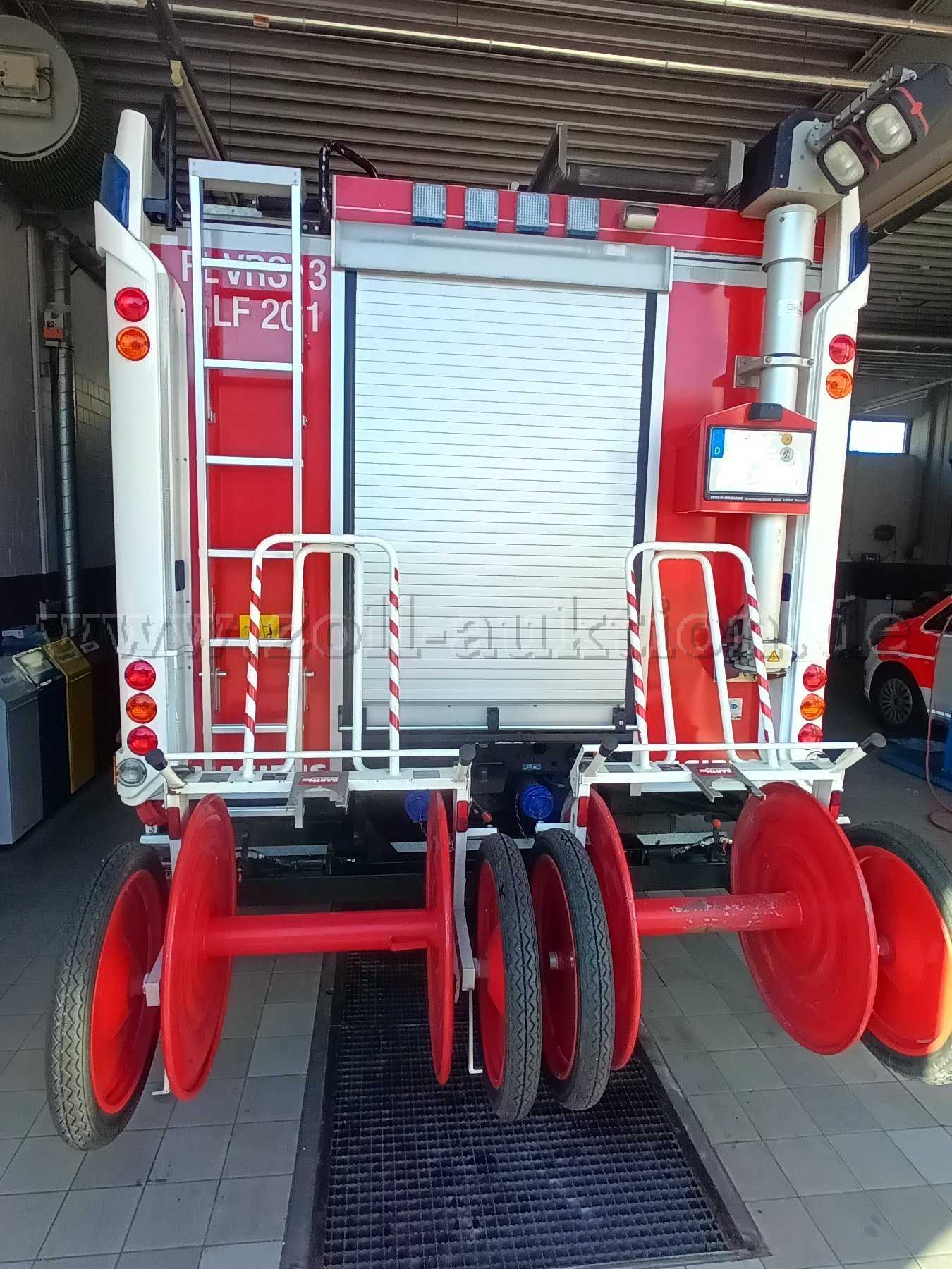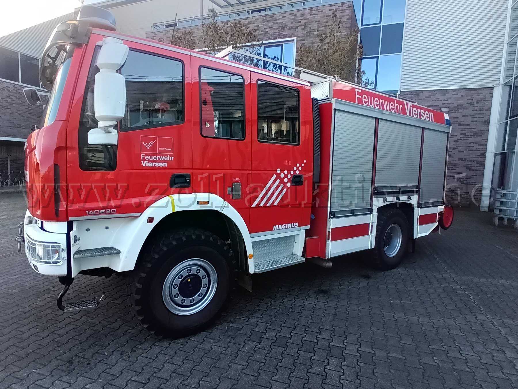 Das Löschfahrzeug hat dem Alter entsprechende Gebrauchsspuren. Wie Kleine Kratzer, Farbabnutzungen, kleine Roststellen, kleine Schäden an der Folierung. Das Fahrzeug verfügt über eine Sondersignalanlage. Die außer Betrieb gesetzt ist.