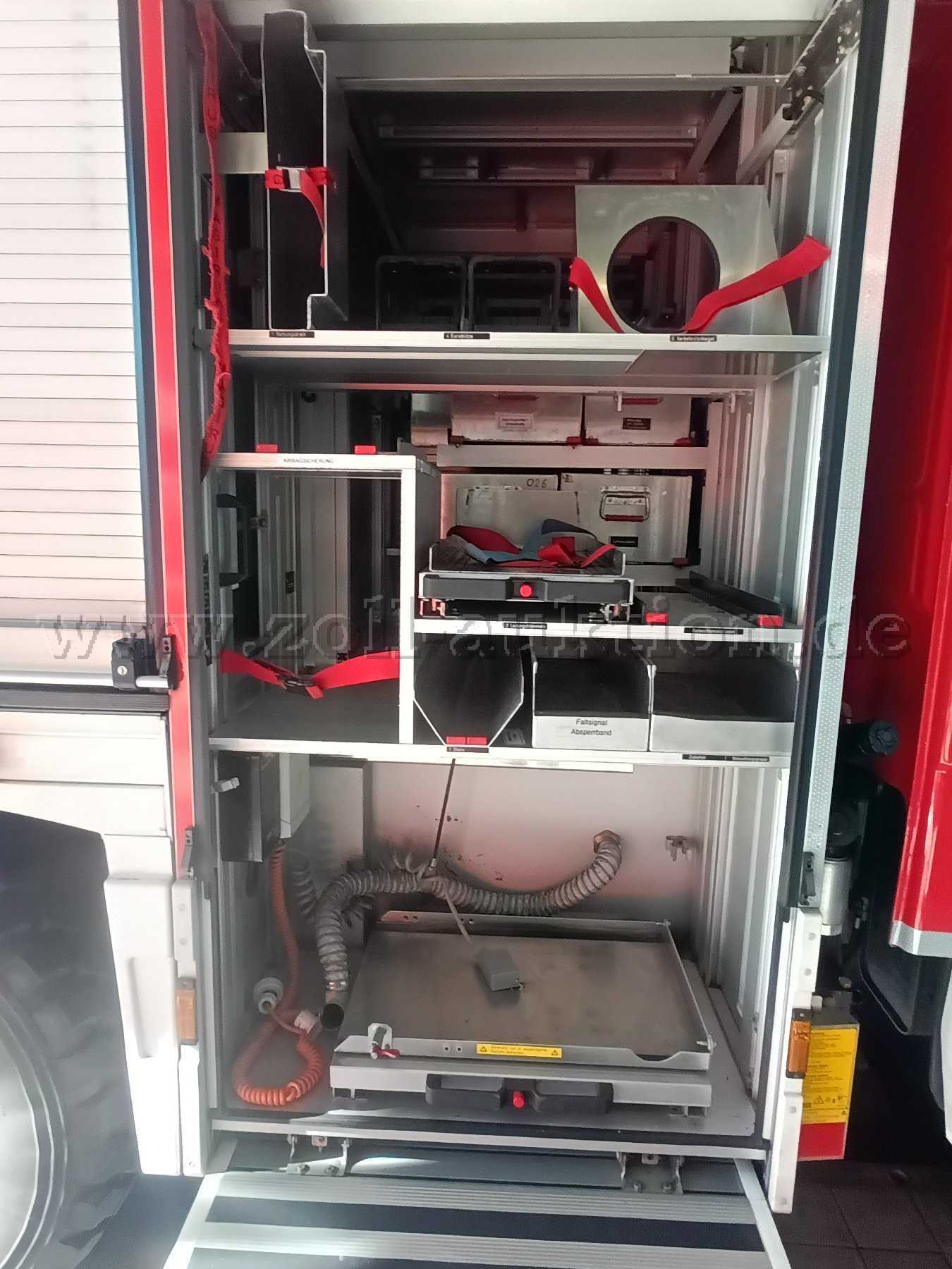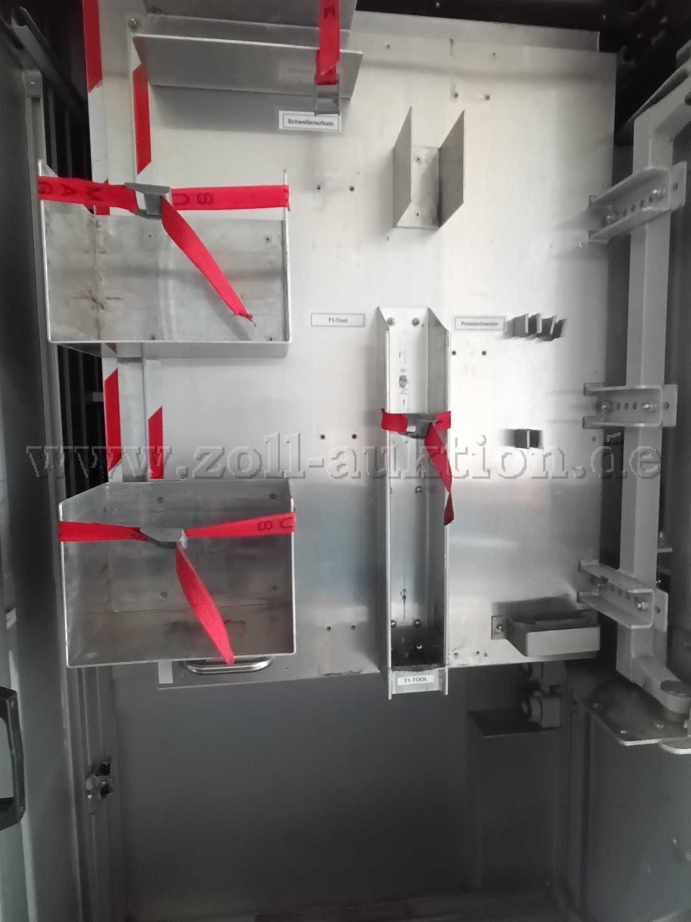 Im 1. Geräteraum befindet sich eine Schwenkwand um Beladungsteile zu verstauen. Und einer Halterung für ein Hydraulikaggregat.
