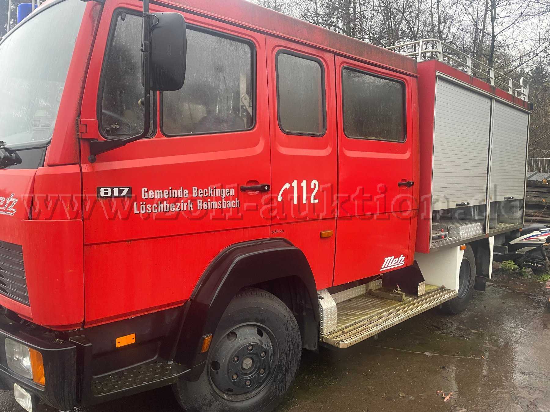 Zur Versteigerung angeboten wird ein ausgemustertes Feuerwehrfahrzeug LF 8 auf Mercedes-Benz