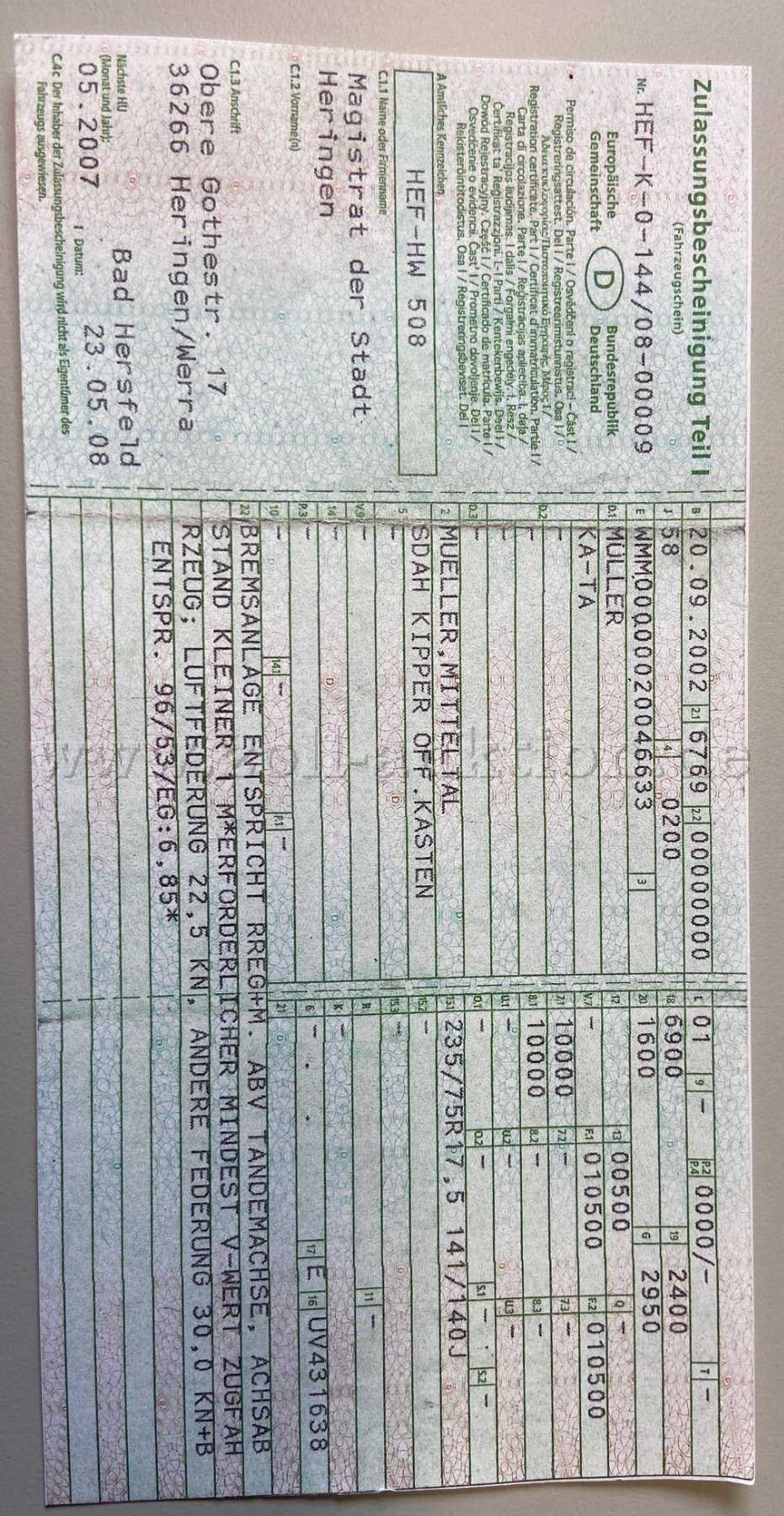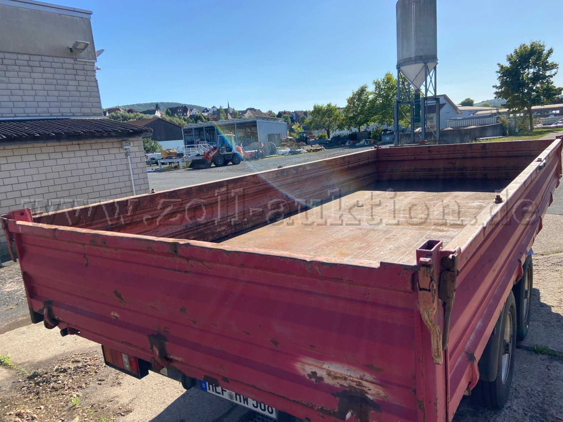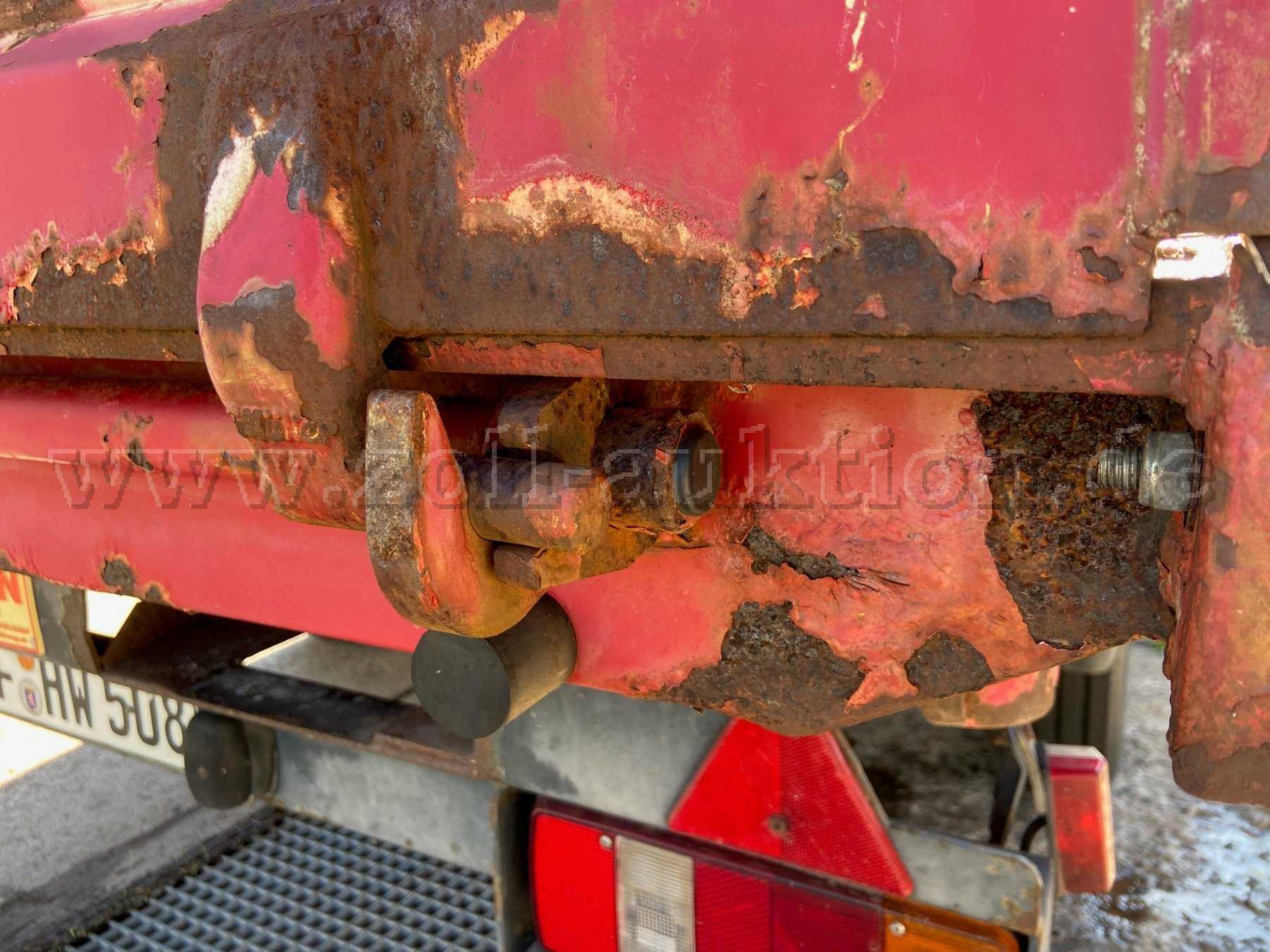 - Karosseriezustand : Der Anhänger ist 24 Jahre alt und hat starken Rostansatz am Rahmen, an den Bordwänden und an den Bauteilen. Er ist aber nicht durchgerostet. Er hat normale Gebrauchsspuren von der Benutzung, leichte Kratzer und kleiner Beulen an allen Bordwänden und der Ladefläche. So wie auf den Bildern zu sehen. Das Aluschild "Stadt Heringen - Wegebau " wird noch entfernt. Es wird empfohlen sich den Anhänger vor Angebotsabgabe, vor Ort in 36266 Heringen (Werra) , anzuschauen.