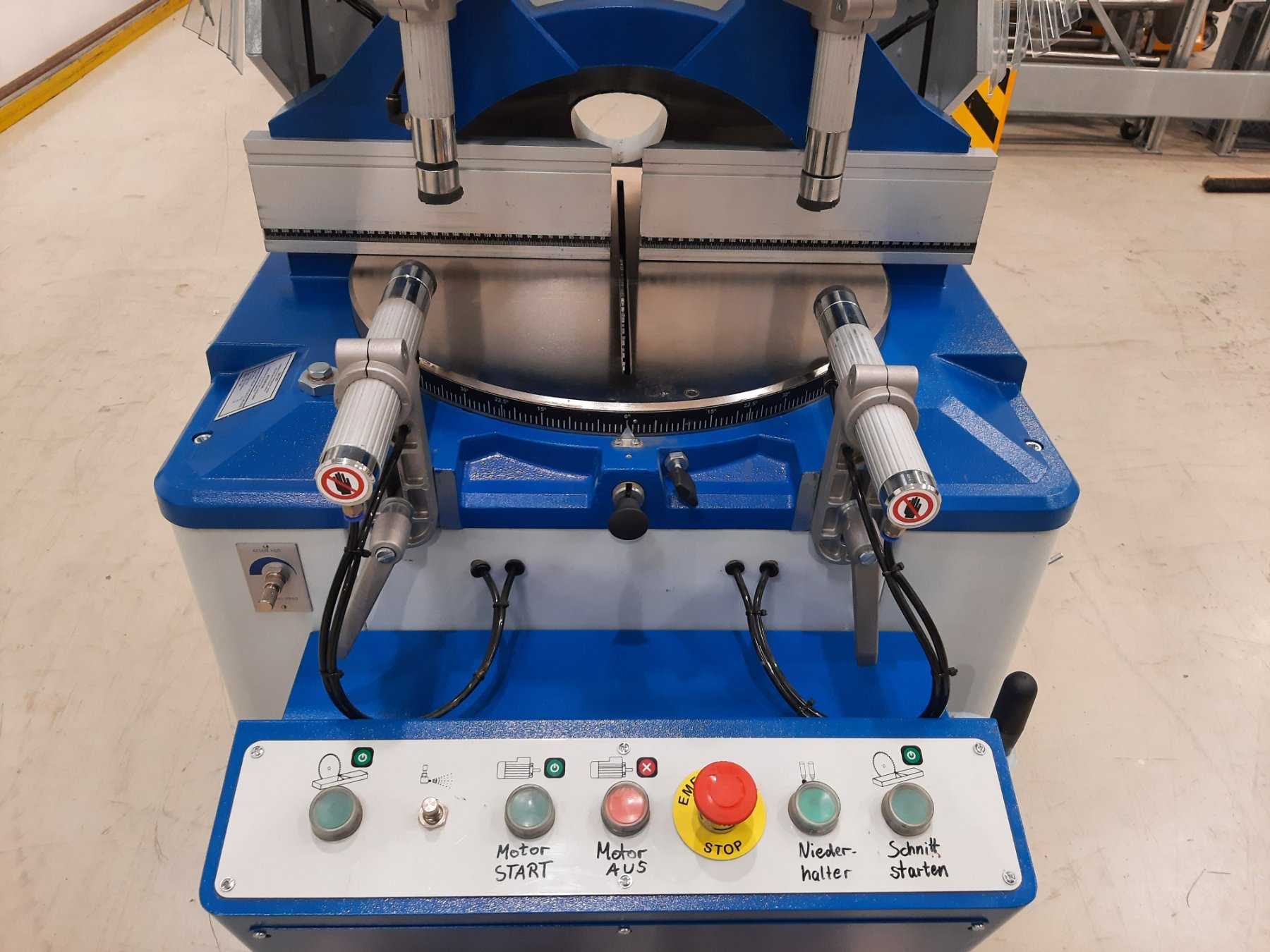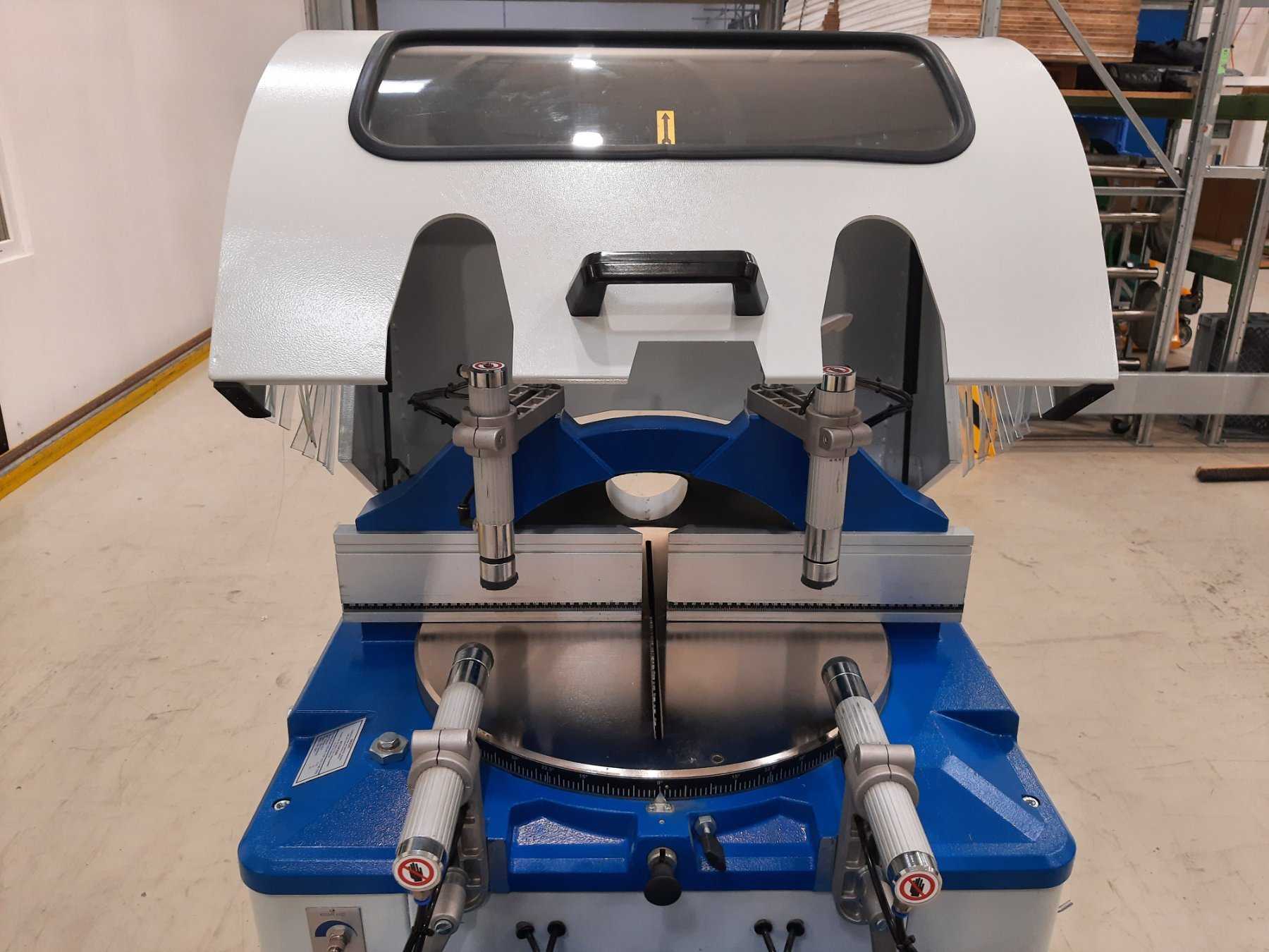automatische Unterflur-Leichtmetallkreissäge mit steigendem Sägeblatt, Durchmesser 420mm, 4 pneumatische Spannstöcke und Doppelgehrung zum Sägen von Leichtmetallen, duroplastischen Kunststoffen und Holz